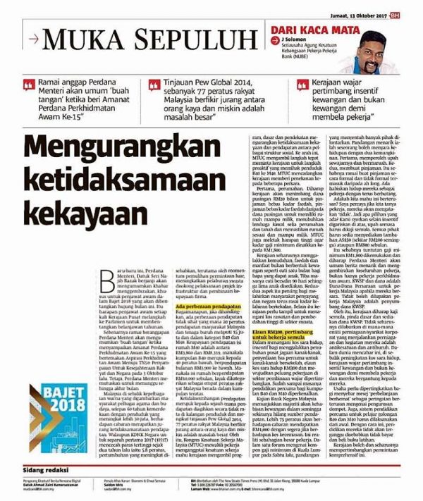 Topik hari ini adalah “Mengurangkan ketidaksamaan kekayaan” oleh Sdr J Solomon Setiausaha Agong NUBE…