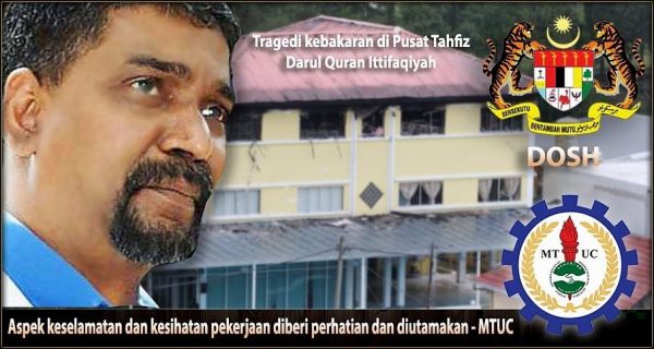 Kongres Kesatuan Sekerja Malaysia mengucapkan takziah atas tragedi yang menimpa pelajar dan kakitangan Pusat Tahfiz Darul Quran Ittifaqiyah, Kuala Lumpur semalam. Sesungguhnya kejadian yang mengorbankn 24 nyawa sesuatu yang amat menyedihkan semua rakyat Malaysia dan kepimpinan Kongres Kesatuan Sekerja Malaysia.