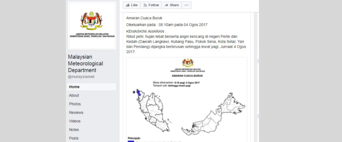 Jabatan Meteorologi Malaysia (METMalaysia), dalam satu kenyataan yang dikeluarkan pagi ini, berkata cuaca buruk itu dijangka akan melanda Kedah membabitkan daerah Yan, Kuala Muda, Baling, Kulim dan Bandar Baharu.