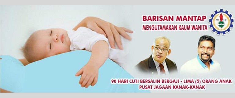 BARISAN Mantap MTUC dengan sokongan anda akan berusaha untuk mendapatkan cuti bersalin minima 90 hari bergaji untuk semua wanita sehingga lima (5) orang anak dan penubuhan pusat jagaan yang baik serta berkualiti yang mampu bagi pekerja berpendapatan rendah dan sederhana.