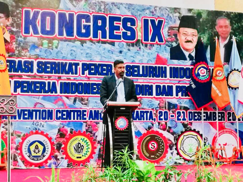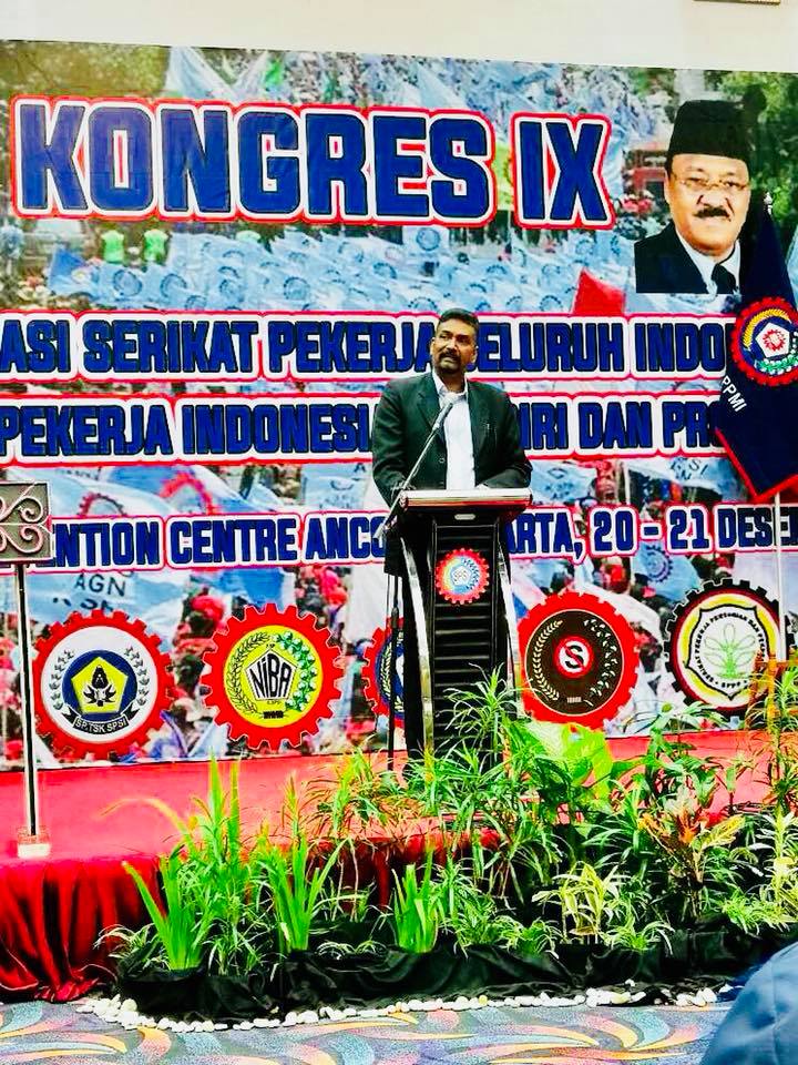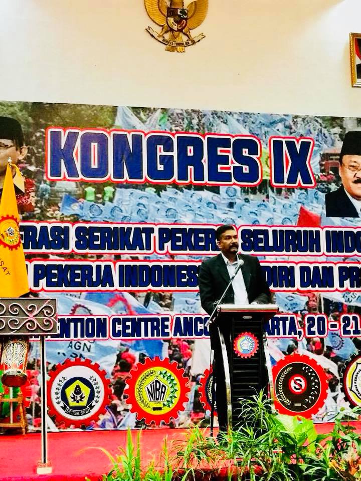 Sdra J Solomon juga memuji kesatuan di Indonesia kerana menjadi contoh terutama dalam memperjuangkan hak-hak dan kepentingan pekerja khususnya di rantau Asia.