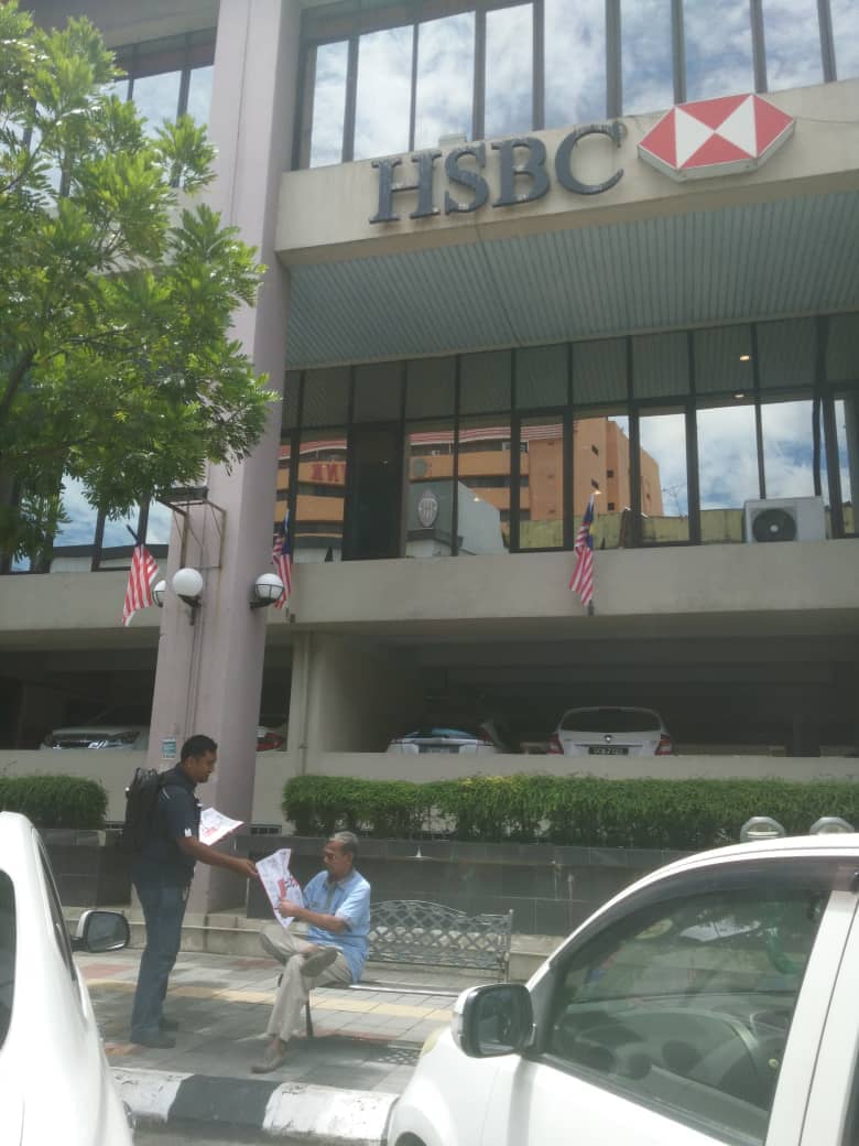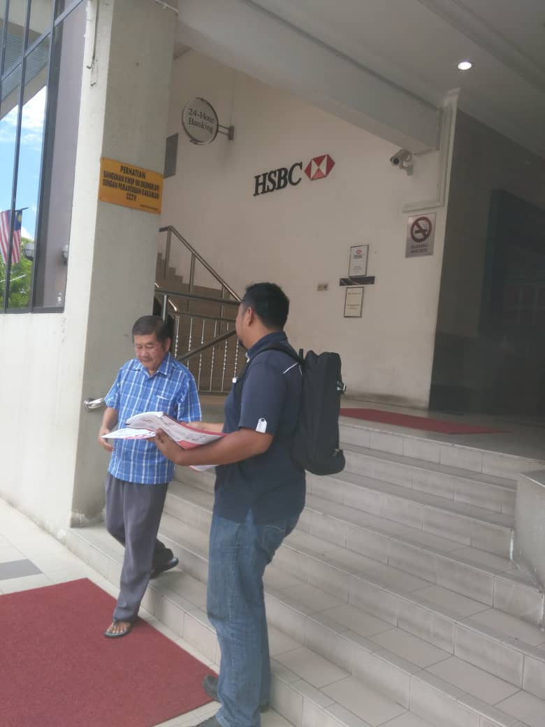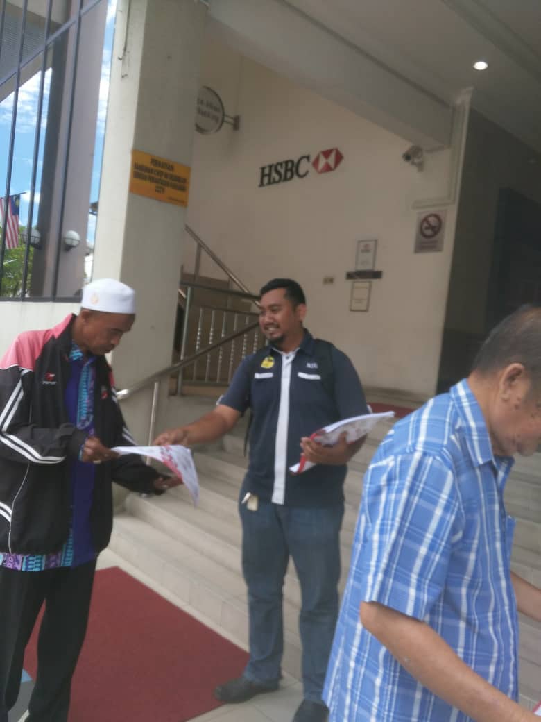 NUBE Kelantan/ Terenggaanu Official Bro Helmie Ahmad is distributing flyers around HSBC Bank Kota Bharu, Jalan Padang Garon today.