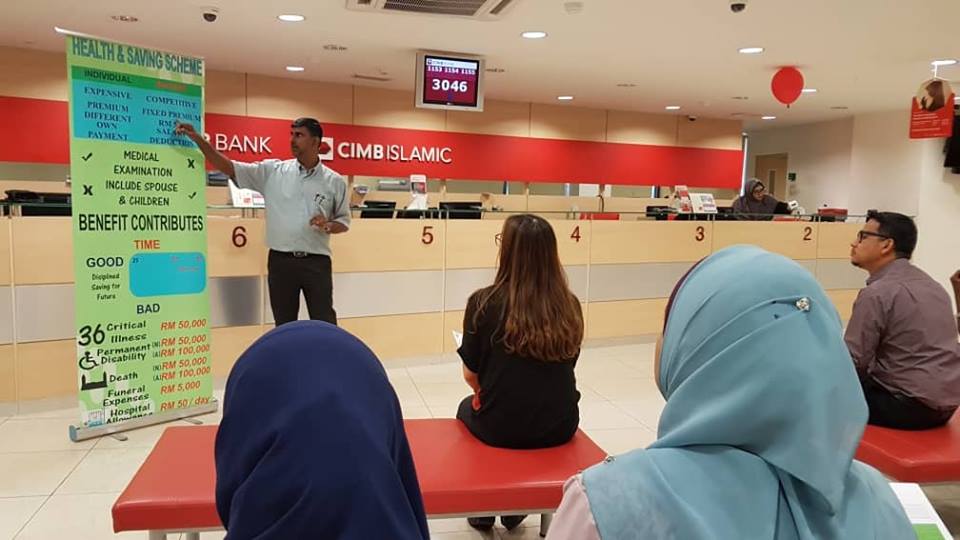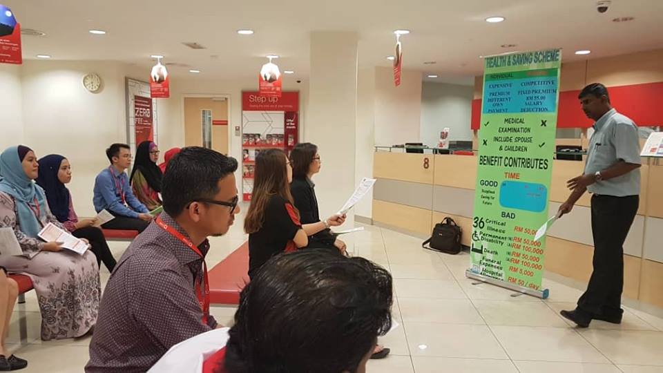 Bayan Baru, 26 Sept 2018 - Satu sesi taklimat mengenai NUBE/Skim Insurans Berkelompok Great Eastern telah diadakan di cawangan Cimb Bayan Baru.Taklimat ini telah dikendalikan oleh Mr Arthi dari Psm GMIS dan dibantu oleh Ahli Jawatankuasa Cawangan Sdr Hafiz dan Ahli Jawatankuasa Kerja Sdr Alvin.