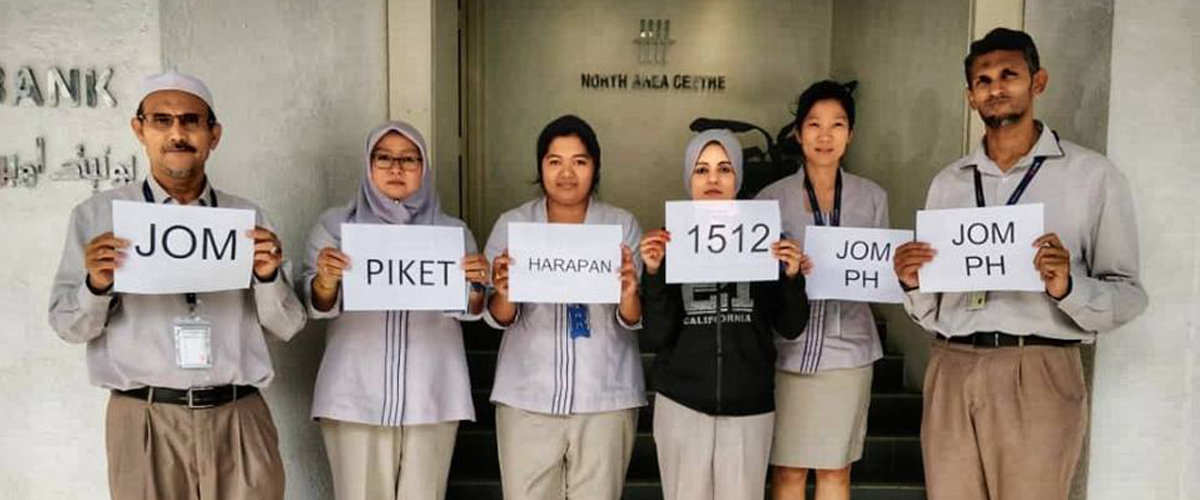 Demi membela hak pekerja golongan B40 yang berpendapatan rendah di HSBC Bank, kami (ahli-ahli UOB Bishop Street) akan turun ke Piket Harapan 1512.