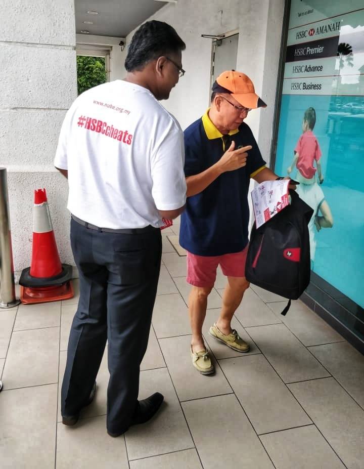 Para pelanggan juga turut diberikan risalah dan dimaklumkan mengenai kekejaman berterusan yang dilakukan oleh pihak pengurusan HSBC Bank.Pegawai-pegawai NUBE NR PKP akan TETAP meneruskan perjuangan ini sehingga berjaya diselesaikan. Ahli-ahli diseru untuk hadir ke PIKET MENENTANG KEKEJAMAN HSBC pada 5 April 2019 bertempat di HSBC Downing Street bermula jam 5.30petang hingga 6.30 petang.