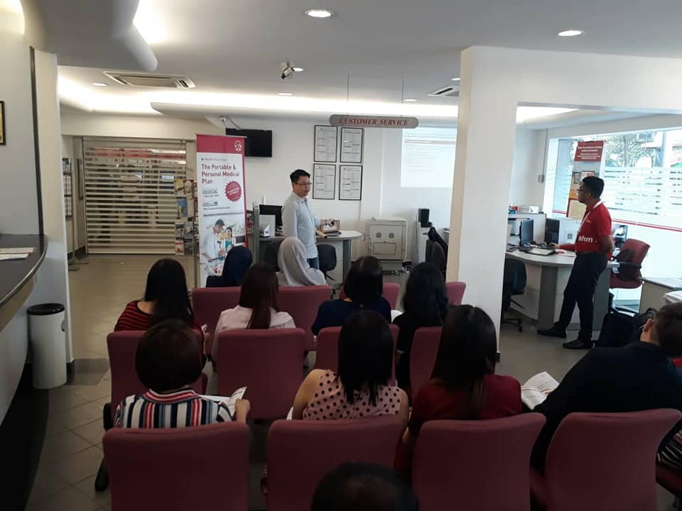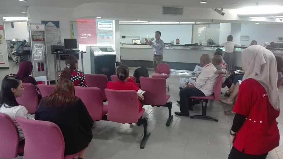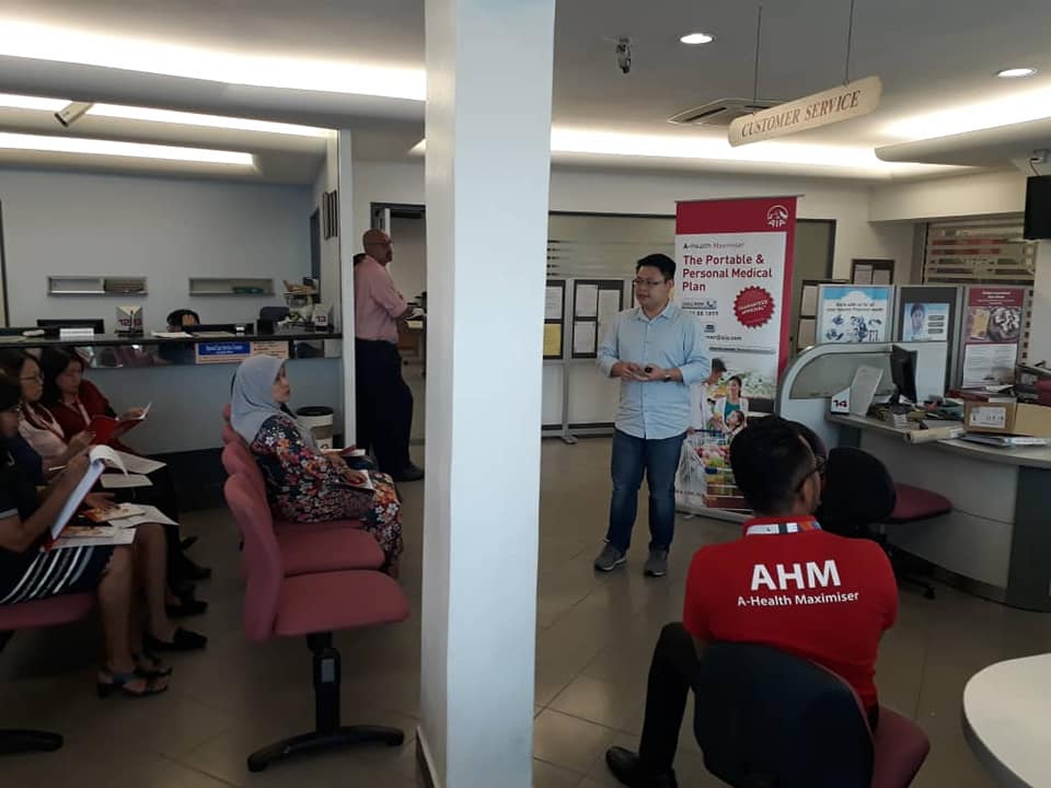A Follow-up session about the hospital insurance scheme and insurance surgery clustered a / aia has been organised by Ipoh a branch with team representative from aia berhad in maybank, jsis, Ipoh, public bank, Ipoh Utama and public bank, bercham on 24th April 2019.