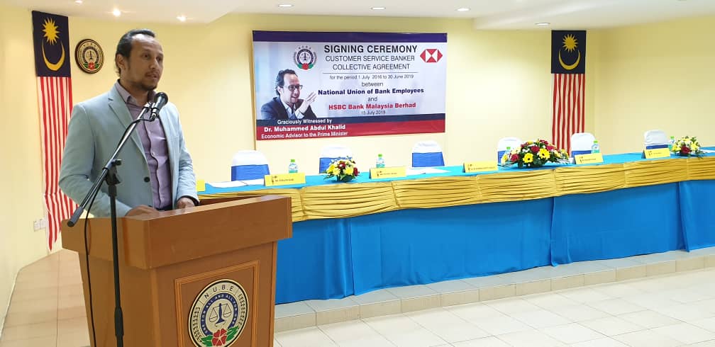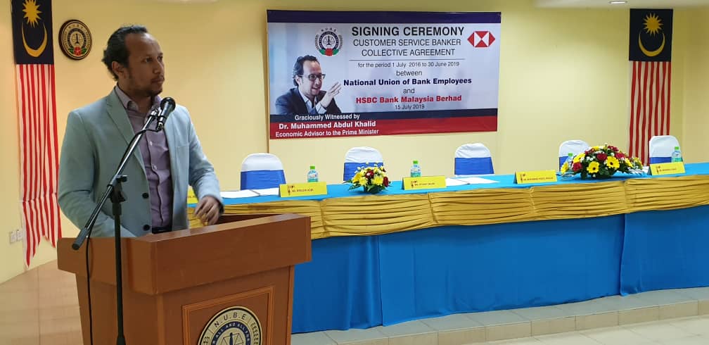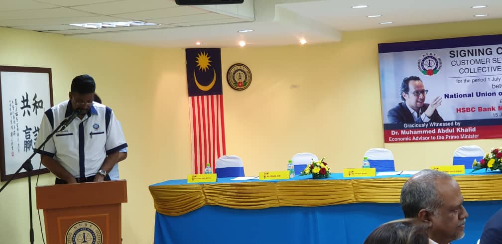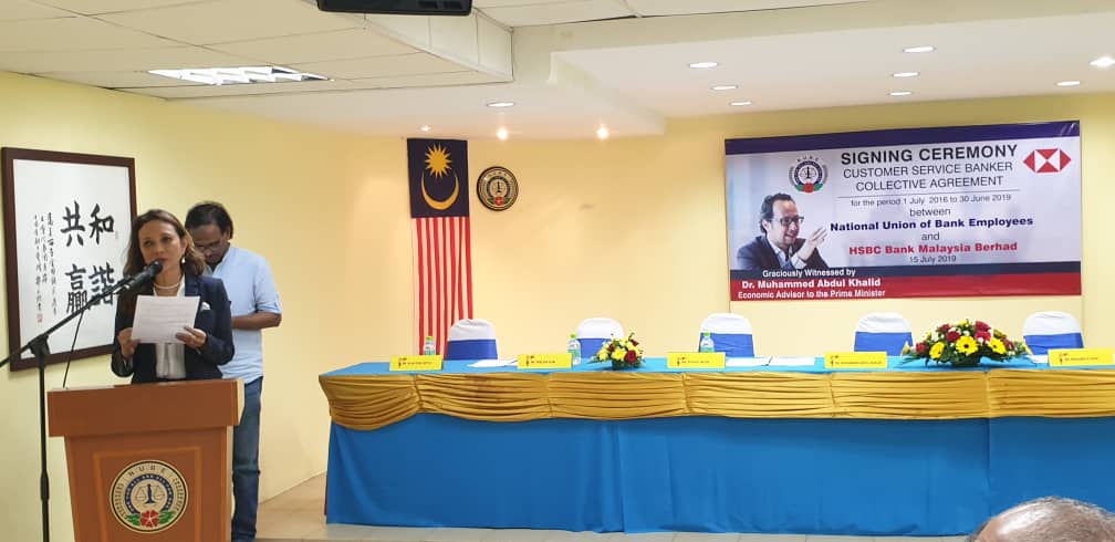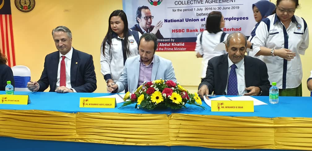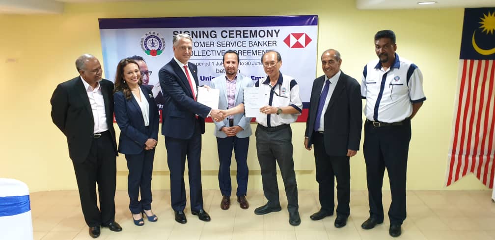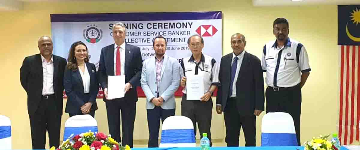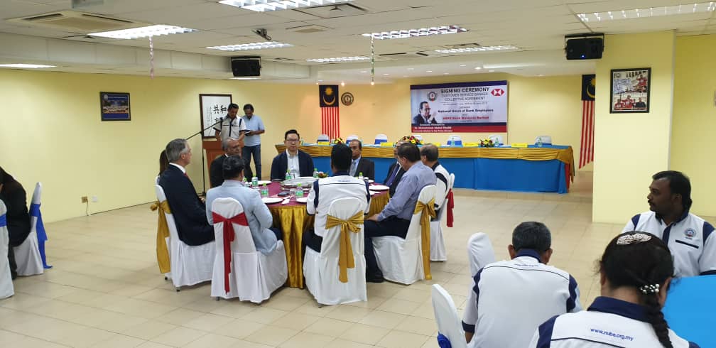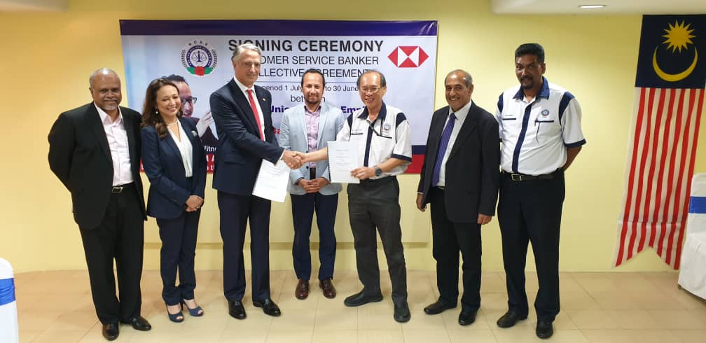 CA hari ini ditandatangani oleh Presiden NUBE Tan Eng Hong dan Setiausaha Agungnya J. Solomon manakala HSBC diwakili oleh Ketua Sumber Manusianya Norlida Azmi dan Alan Sunil Netto selaku Ketua Perhubungan Perusahaan HSBC,