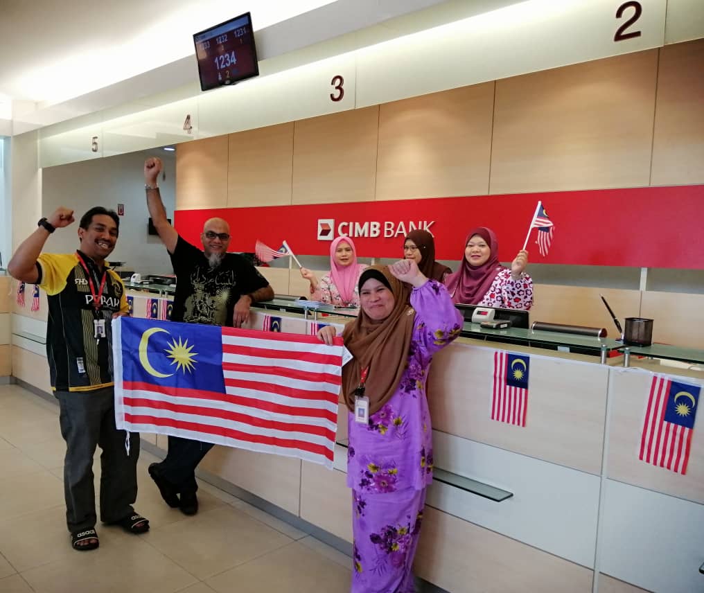 30 Ogos 2019 - Para Pegawai Nube Cawangan Ipoh telah meraikan Hari Kebangsaan yang ke-62, Mereka turut sama mengibarkan Jalur Gemilang dengan banganya bersama para ahli NUBE dari Public Bank Ipoh Utama, Seri Manjung, Maybank Station 18, Menglembu, Cimb Bank Taiping, Greentown, Jalan Tun.Sanbahthan, Taman Ipoh, Bank Islam Bagan Serai dan Taiping. Marilah kita bersatu hati Menyambut Hari Kebangsaan. Sayangi Malaysiaku.