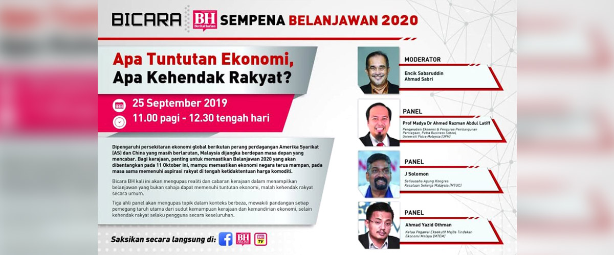 Saksikanlah Bicara Belanjawan 2020: Apa tuntutan ekonomi, Apa kehendak Rakyat?