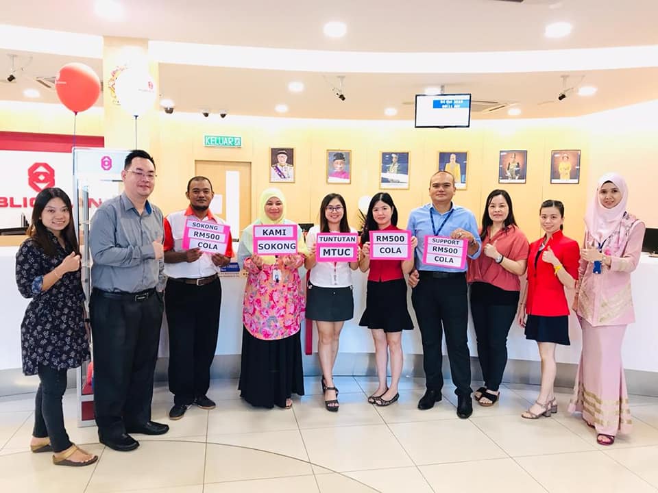 Ahli - ahli NUBE dari Public Bank Cawangan Gurun memberikan sokongan penuh terhadap tuntutan MTUC RM500 COLA & 65 had umur persaraan yang dilihat sebagai satu usaha membantu pekerja keluar dari kancah kemiskinan ketara.