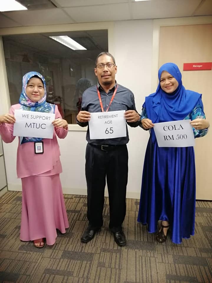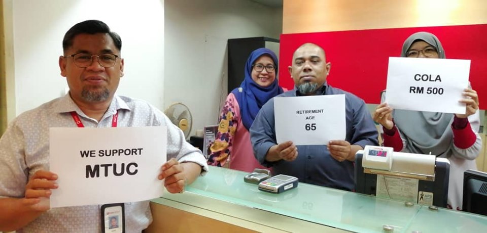 Kami ahli-ahli dari Bank Islam Taiping, CIMB Bank Taiping dan CIMB Bank Kampar menyokong penuh saranan dan persaraan 65 dan COLA RM500 bagi golongan B40 dan M40.