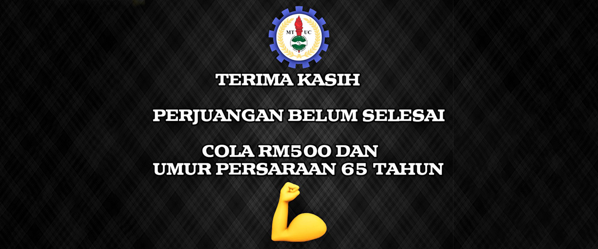 On behalf of the MTUC leadership, I wish to record my deepest gratitude to each and every brother and sister in our union for their undivided support for our campaign to urge the government to introduce RM500 monthly COLA and extend the mandatory retirement age to 65 years.