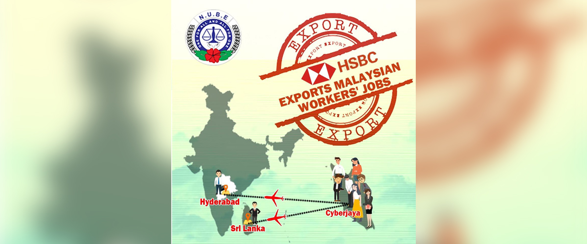 HSBC Bank is exporting jobs of Malaysians to India, Sri Lanka and to purportedly to workers in Cyberjaya and other vendors that are non-unionised entities. This clearly tantamounts to union busting.