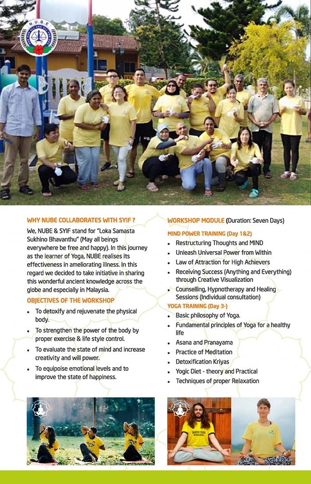 Siri Keenam Program YOGA DAN MENGASAH KEKUATAN MINDA NUBE akan berlangsung pada bulan depan (Febuari. Ia sekali lagi akan dikendalikan oleh pakar tersohor daripada Pusat Santhi Yoga International di Kerala, India.