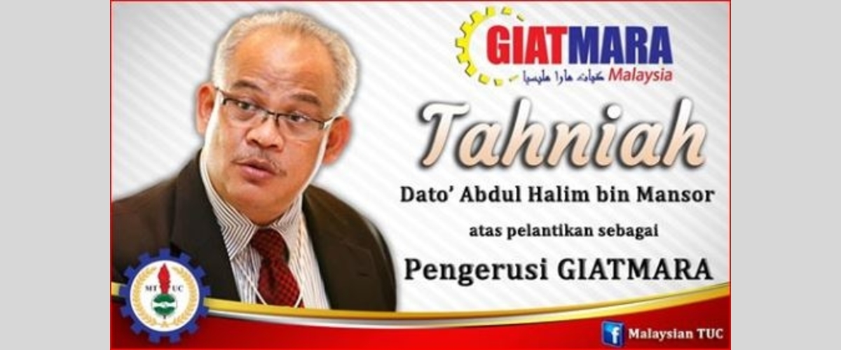 MTUC mengucapkan setinggi-tinggi tahniah kepada Presiden kami atas pelantikan beliau sebagai Pengerusi GiatMara.