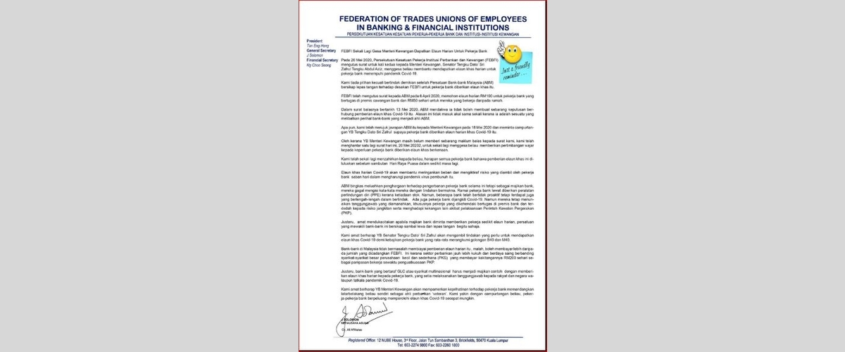 FEBFI REITERATES CALL TO FINANCE MINISTER TO SECURE DAILY ALLOWANCE FOR BANK EMPLOYEES