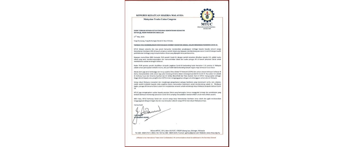 OPEN LETTER TO DIRECTOR GENERAL OF HEALTH DATUK DR. NOOR HISHAM BIN ABDULLAH
