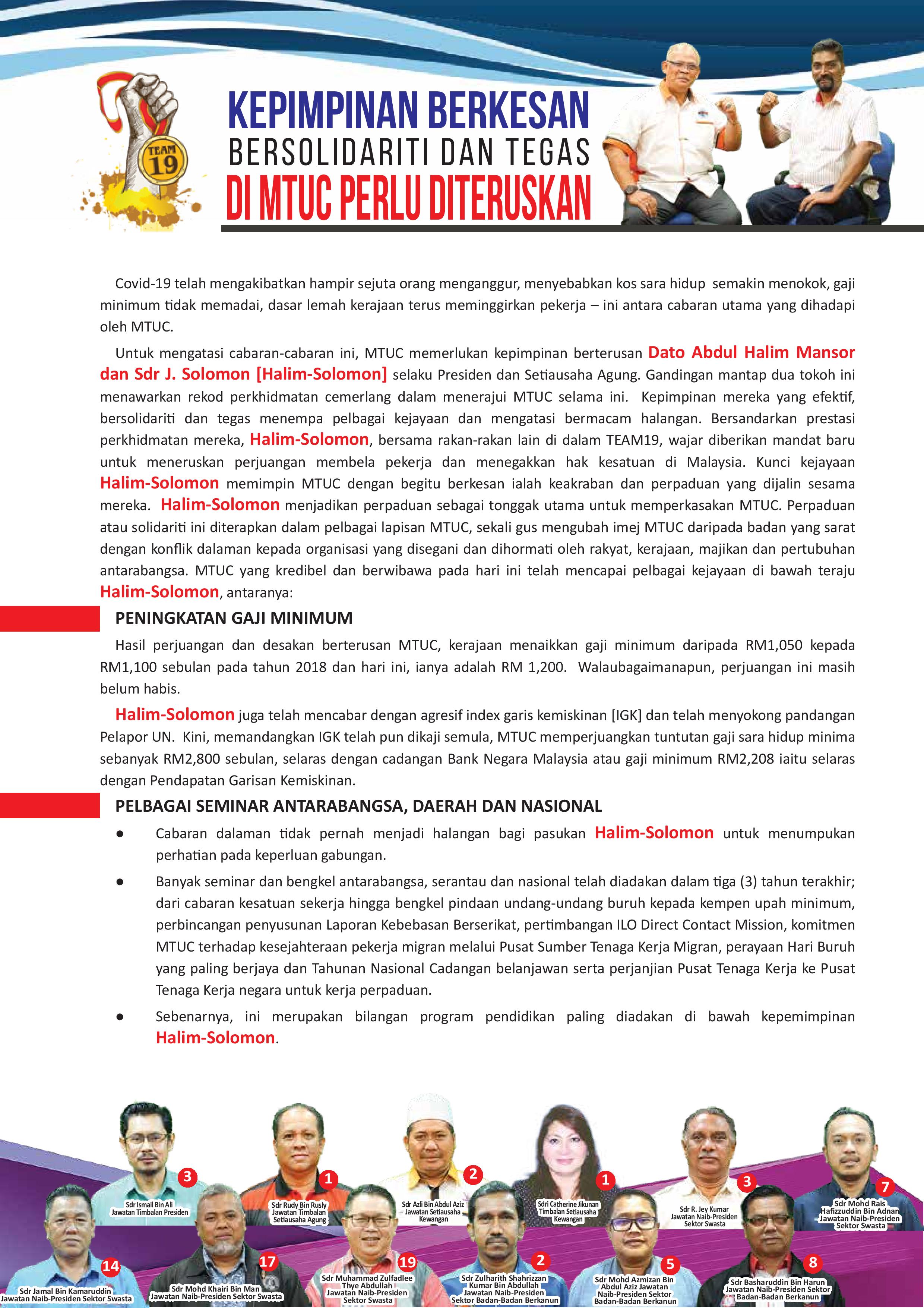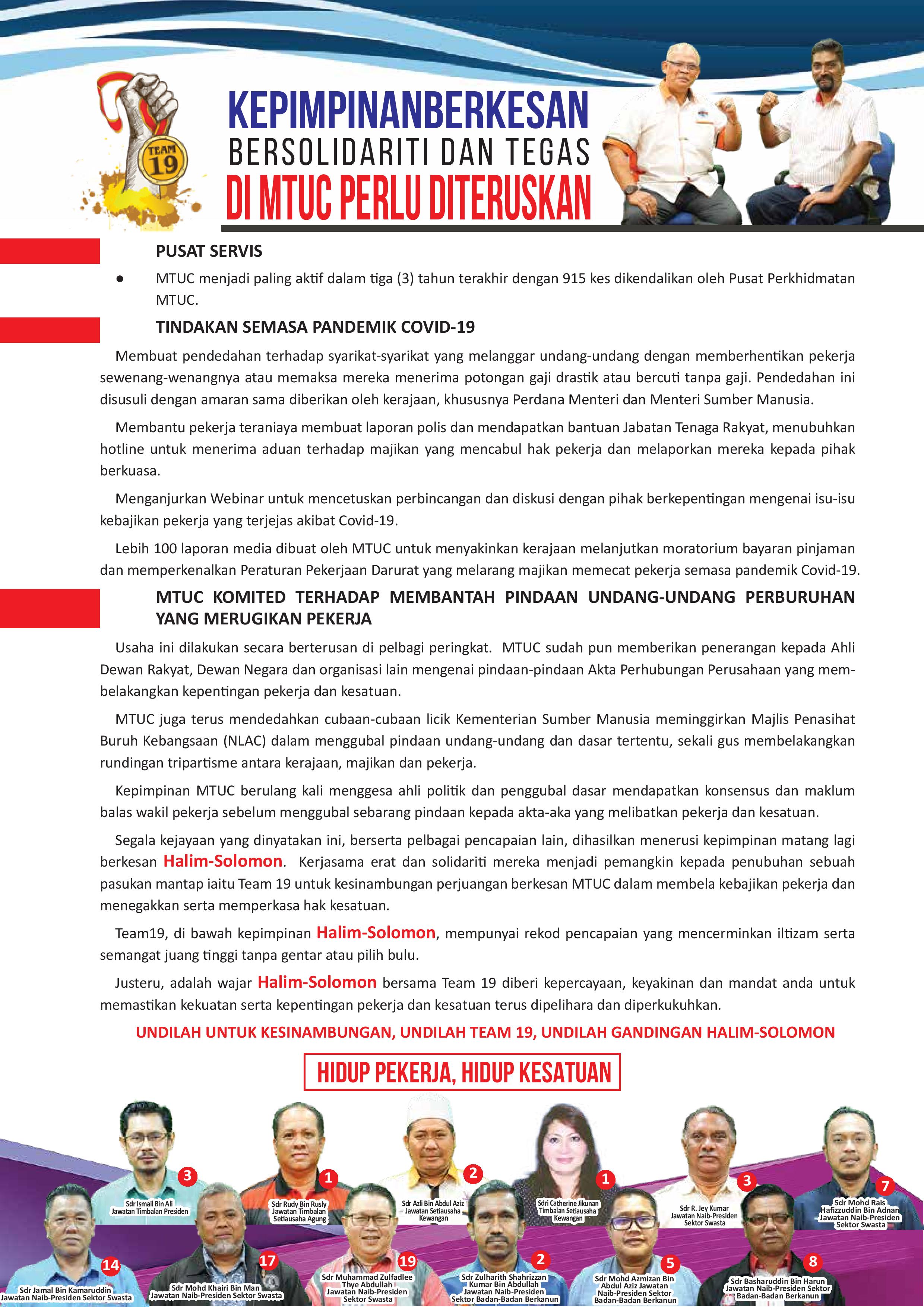 KEPIMPINAN BERKESAN | BERSOLIDARITI DAN TEGAS | DI MTUC PERLU DITERUSKAN