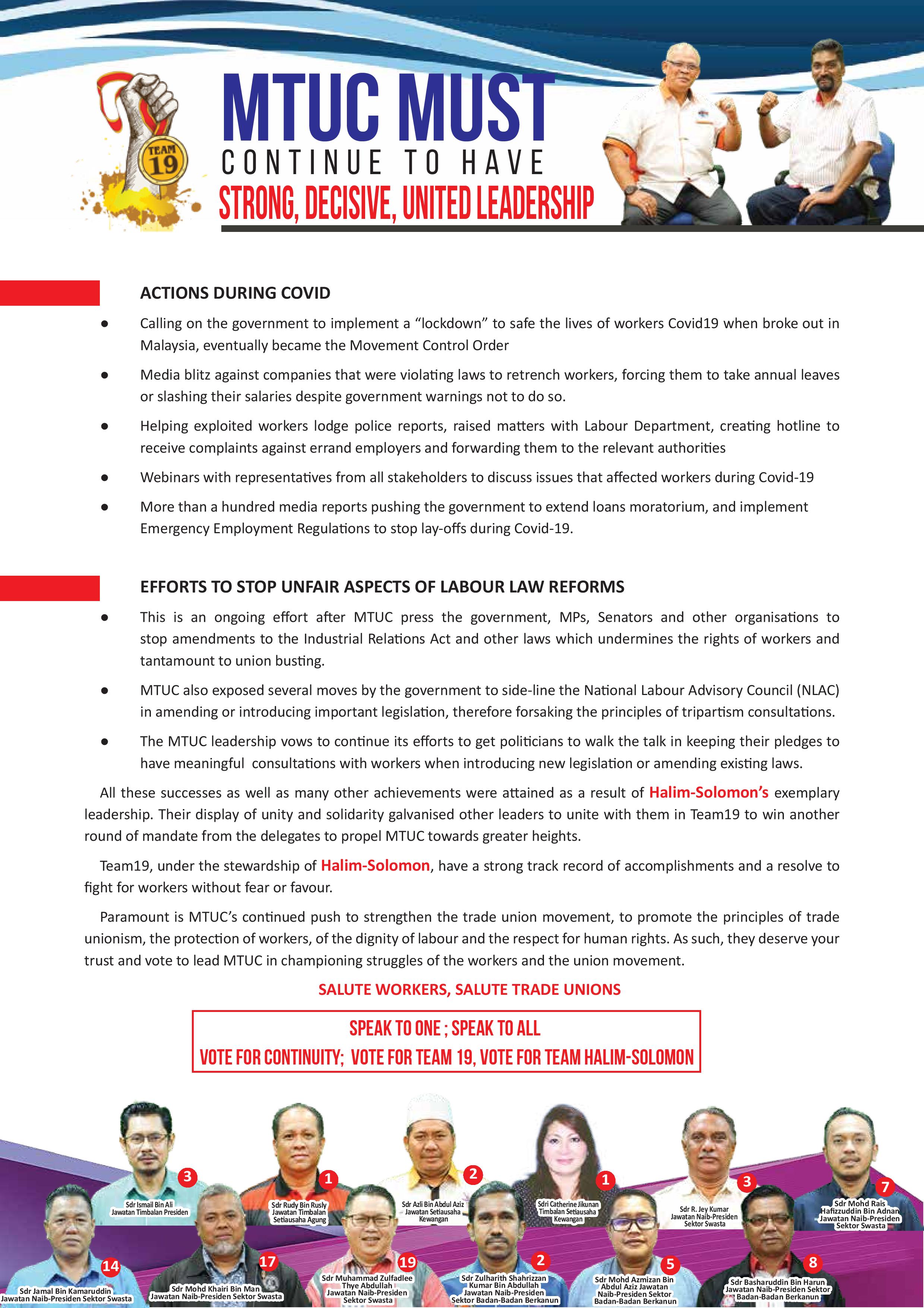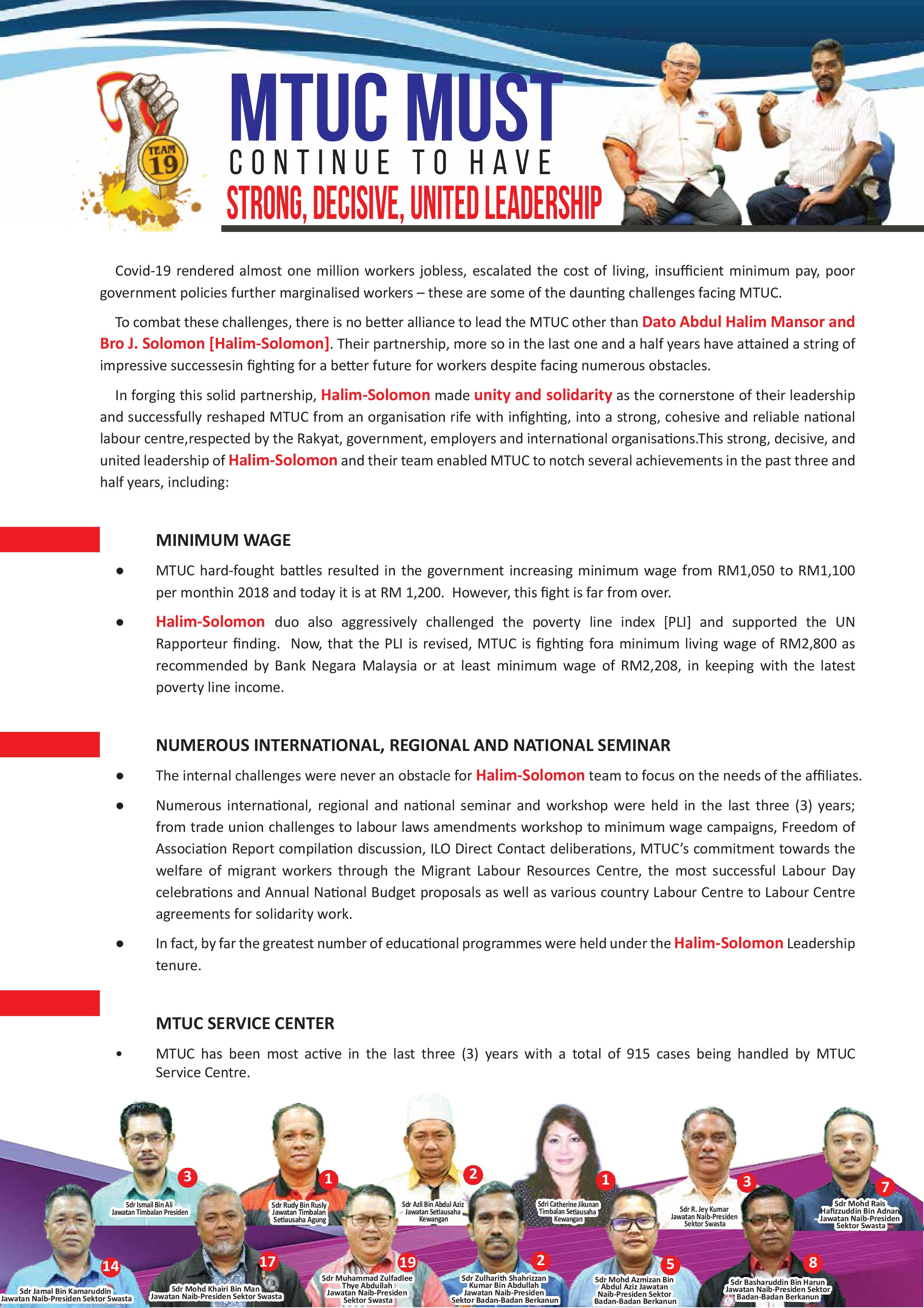 MTUC MUST | CONTINUE TO HAVE | STRONG, DECISIVE, UNITED LEADERSHIP