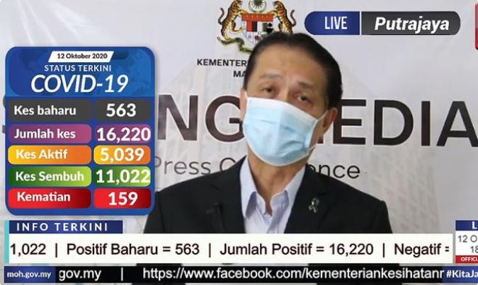 COVID-19 | Malaysia has recorded 563 new Covid-19 cases as of noon today, bringing Malaysia's total active cases to a record 5,039.