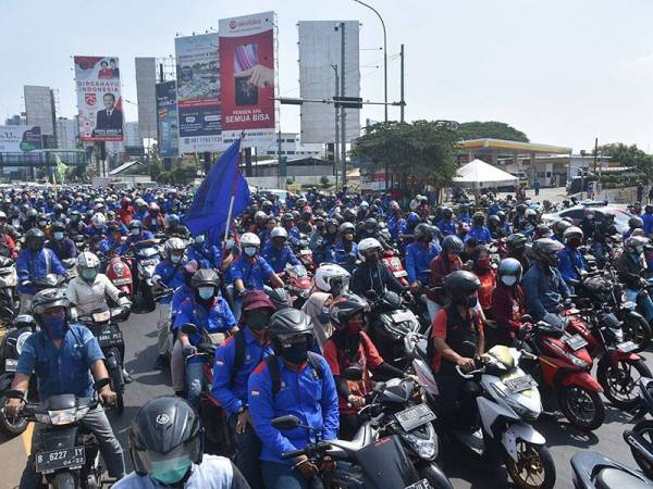 JAKARTA - Lebih 5,000 mahasiswa dari 300 universiti di seluruh Indonesia merancang untuk berarak ke Istana Merdeka esok sebagai membantah Undang-undang Cipta Kerja yang didakwa sebagai 'ancaman serius' kepada hak pekerja.