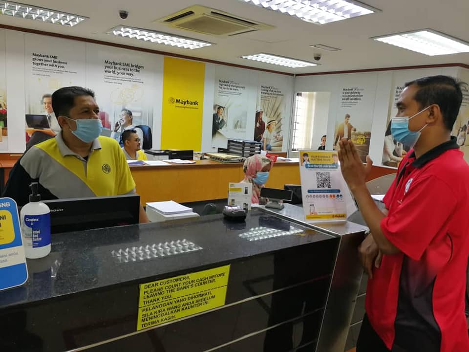 Butterworth, Penang 3 November 2020 - Setiausaha Kehormat NUBE NR-PKP merangkap Bendahari Agung NUBE Malaysia Sdr Chee Yeeh Ceeu dan Ahli Jawatankuasa Sdr Abdul Ghani Abu Bakar telah melaksanakan lawatan kerja di Maybank Cawangan Ong Yi How , CIMB Cawangan Raja Uda dan Public Bank Bagan Ajam hari ini.