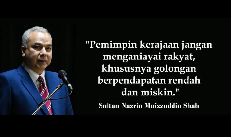 Duli Yang Maha Mulia Sultan Nazrin Muizzuddin Shah bertitah bahawa jemaah menteri agar tidak mengkhianati rakyat yang berpendapatan rendah dan miskin.