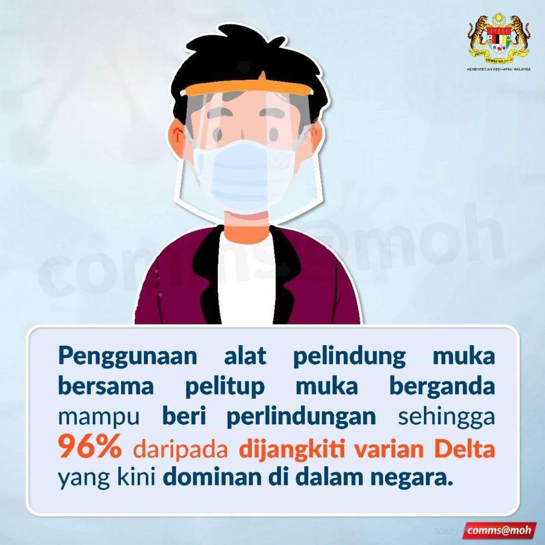 Pemakai pelitup dan pelindung muka dapat membantu mengelakkan jangkitan COVID-19 dalam komuniti.