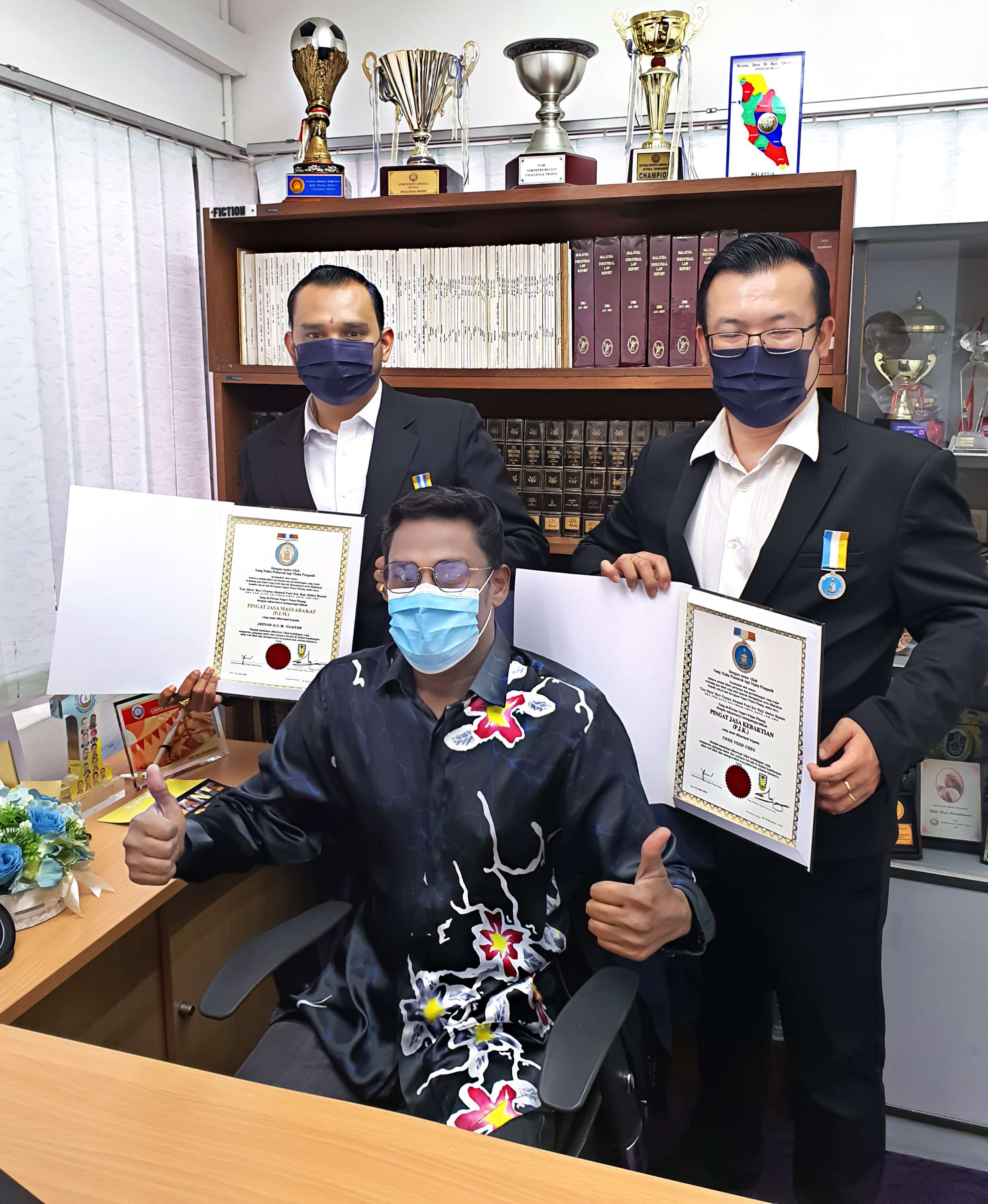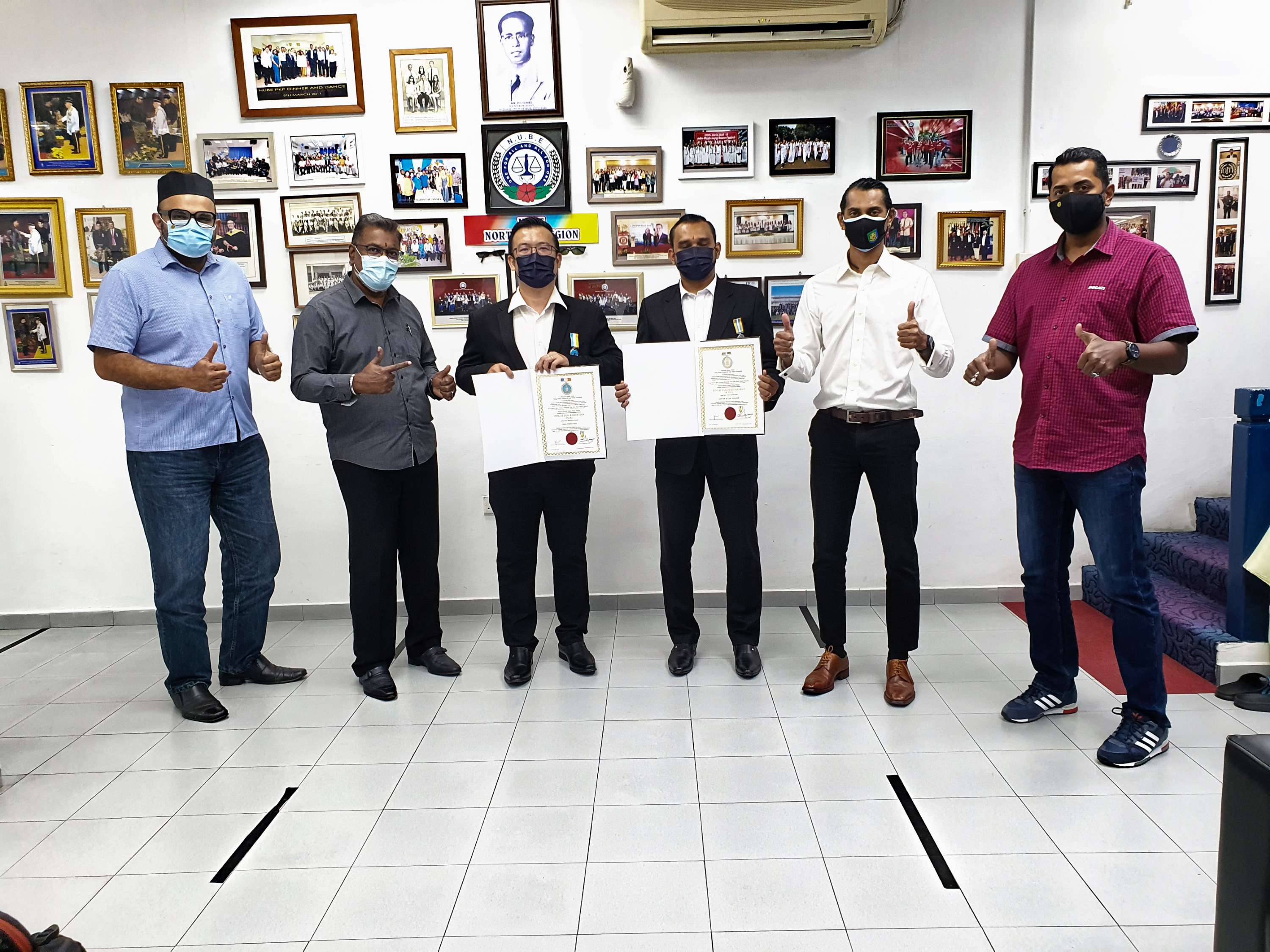Bro Chee Yeeh Ceeu yang merupakan Bendahari Agung NUBE Malaysia merangkap Setiausaha Kehormat NUBE PKP dianugerahkan Pingat Jasa Kebaktian (PJK) manakala Ahli Jawatankuasa Cawangan NUBE PKP, Bro Jeevan M. Vijayan menerima Pingat Jasa Masyarakat (PJM).