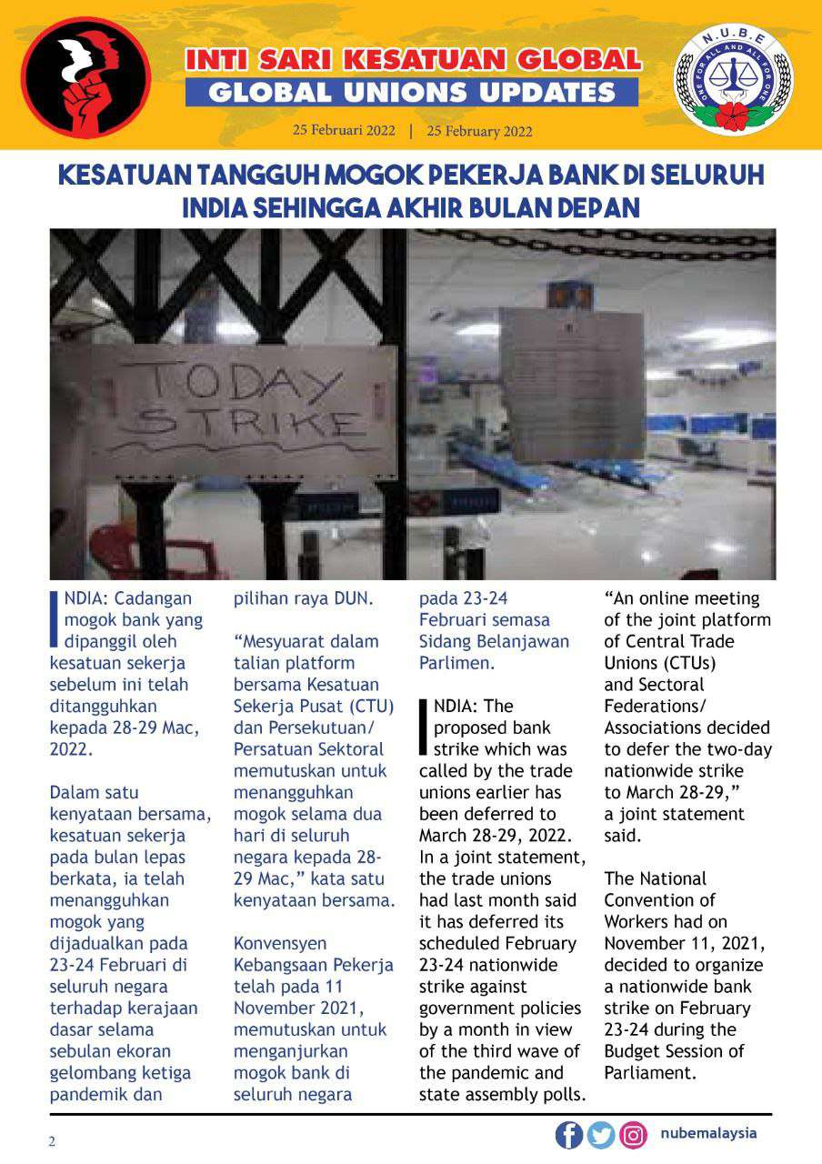 To post likes and comments on National Union of Bank Employees stories, you will need to Signin or Register Now
