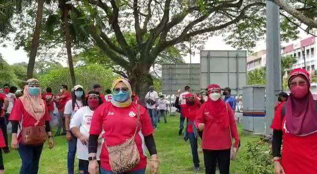 Semangat wirawati kita di lapangan... lokasi piket sedang berlangsung di pekarangan HSBC Bank Malaysia Cawangan Jalan Bukit Timbalan, JB...