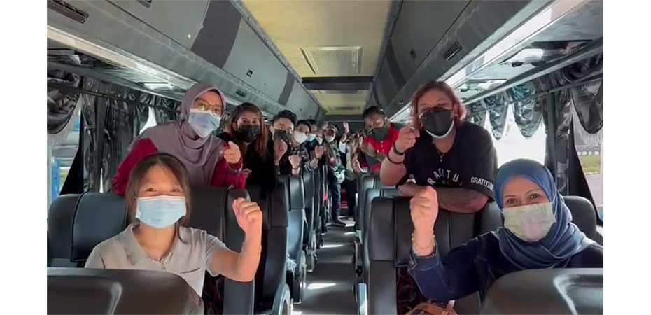 Menaiki bas, datang beramai-ramai dari KL demi perjuangan ahli-ahli kita di HSBC.