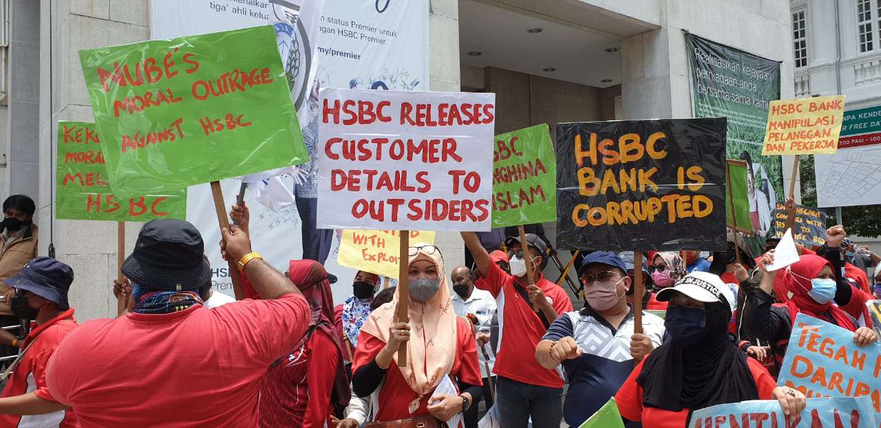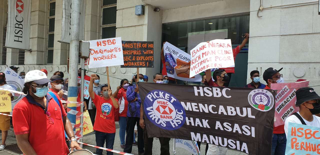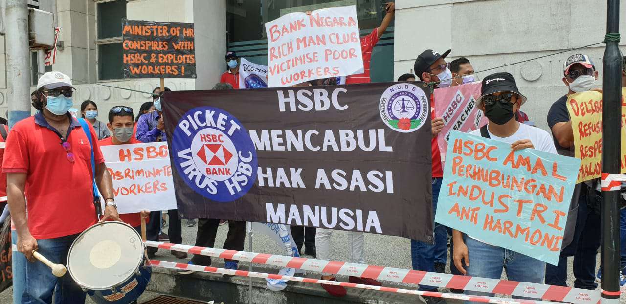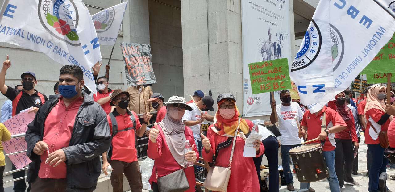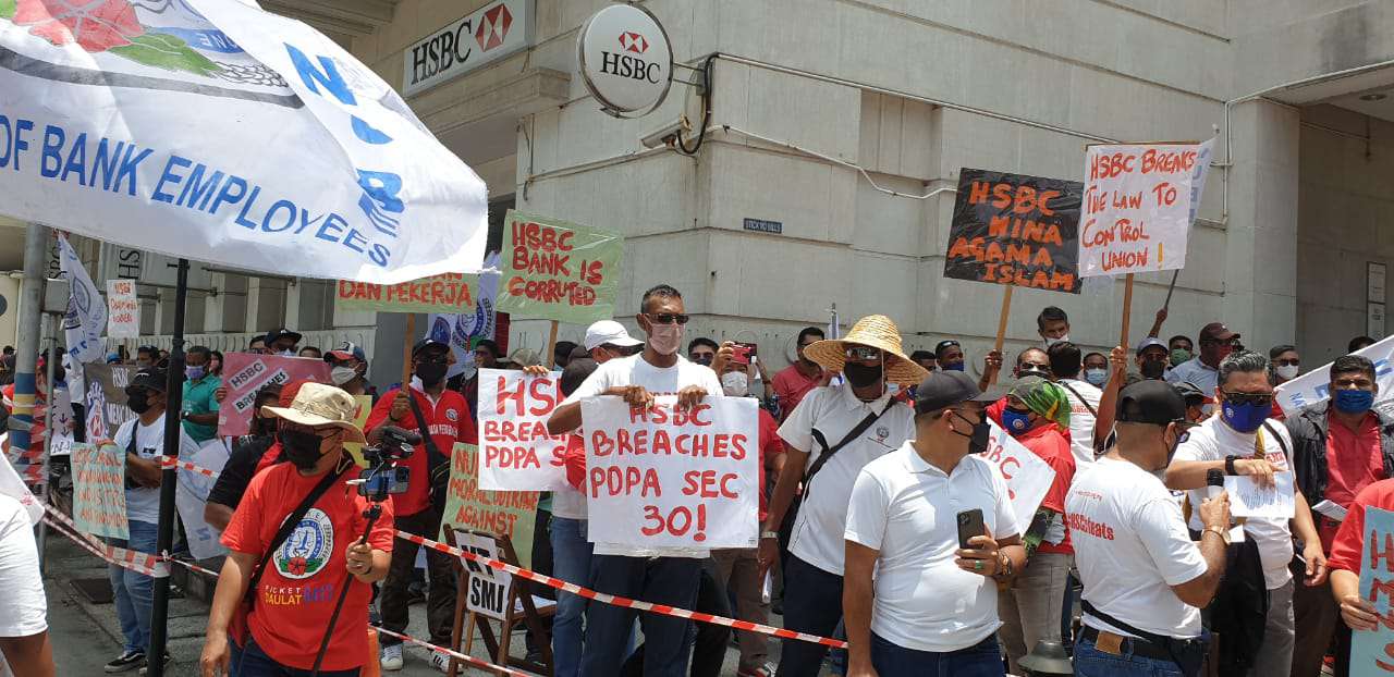 Dengan tidak mempedulikan cuaca yang panas terik, ahli-ahli dan pemimpin NUBE berkumpul di hadapan HSBC Bank Cawangan Pulau Pinang di Downing Street, George Town demi memperjuangkan nasib ahli-ahli NUBE di HSBC.