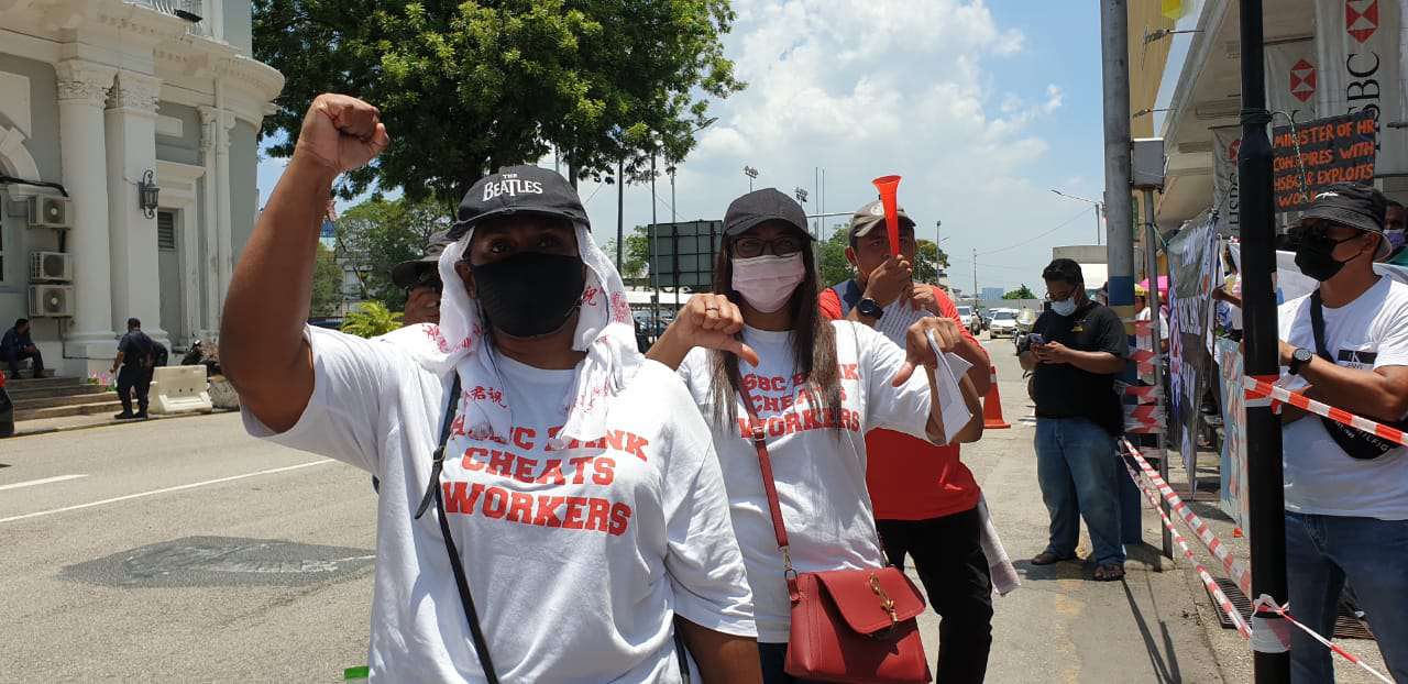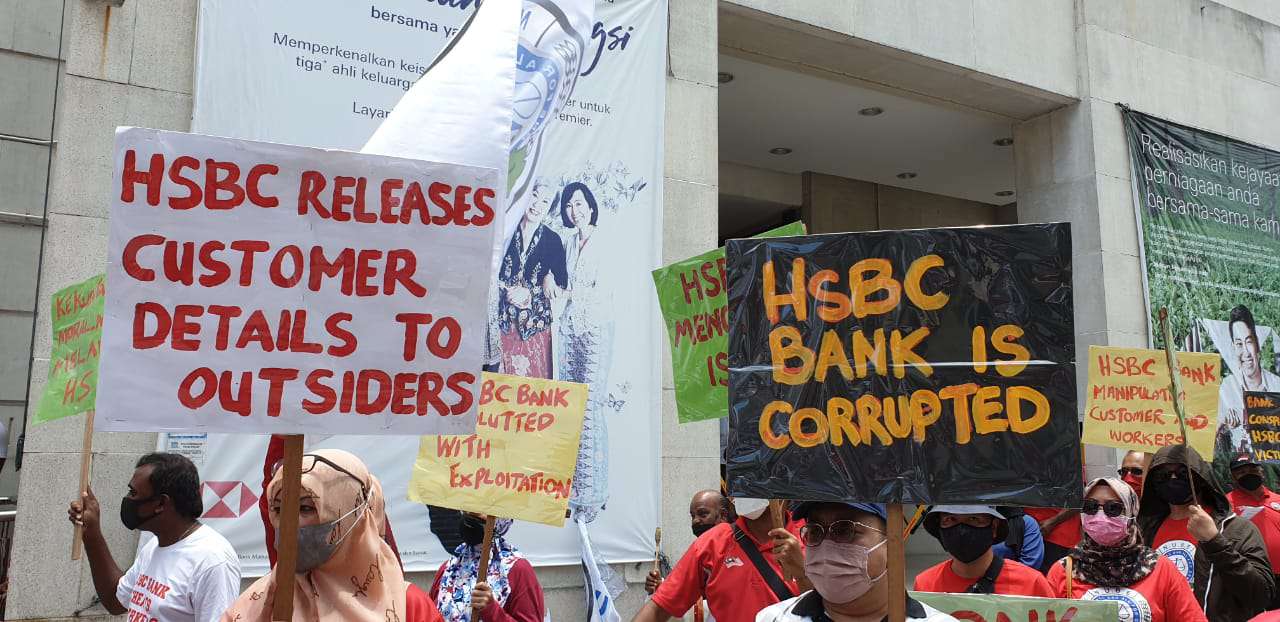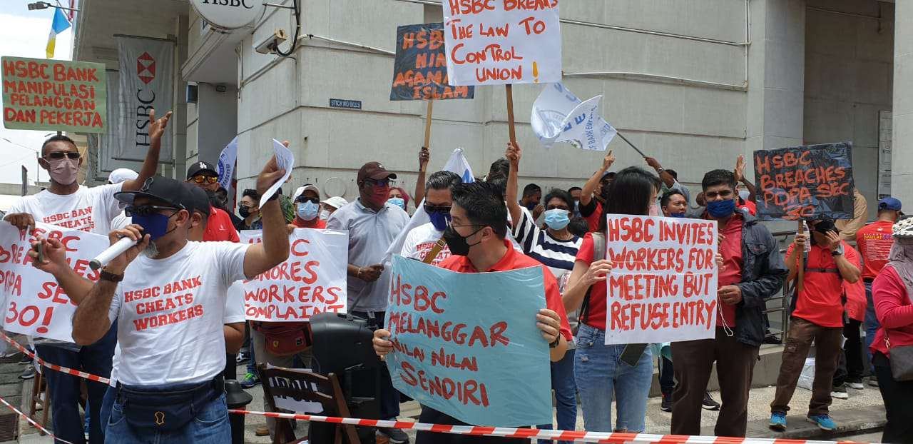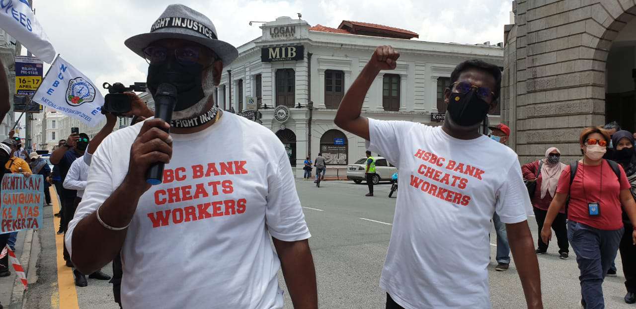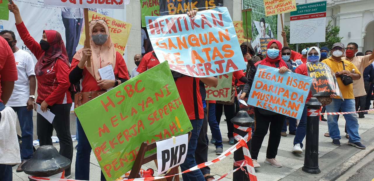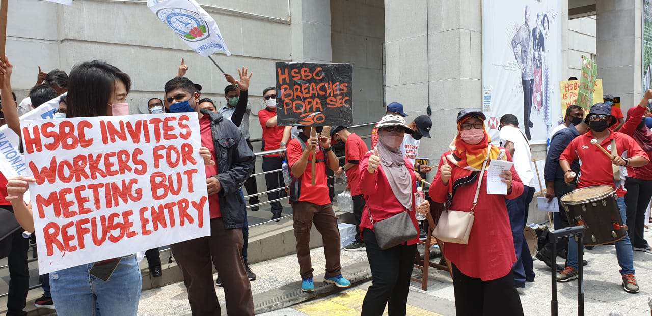 Dengan tidak mempedulikan cuaca yang panas terik, ahli-ahli dan pemimpin NUBE berkumpul di hadapan HSBC Bank Cawangan Pulau Pinang di Downing Street, George Town demi memperjuangkan nasib ahli-ahli NUBE di HSBC.