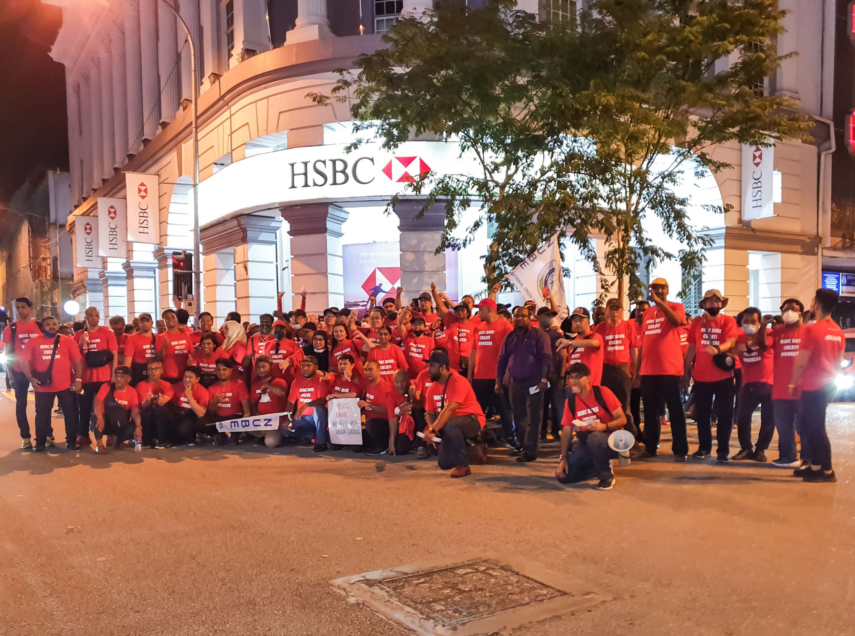 IPOH, 27 Mei: Selepas empat jam menzahirkan semangat solidariti melawan ketidakadilan dan diskriminasi HSBC Bank Malaysia, pemimpin dan ahli NUBE berkumpul di hadapan HSBC Bank Malaysia, Jalan Sultan Yusof, Ipoh, Perak malam tadi. Piket yang bermula jam 5 petang berakhir 9 malam.