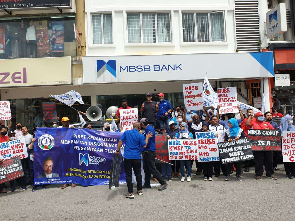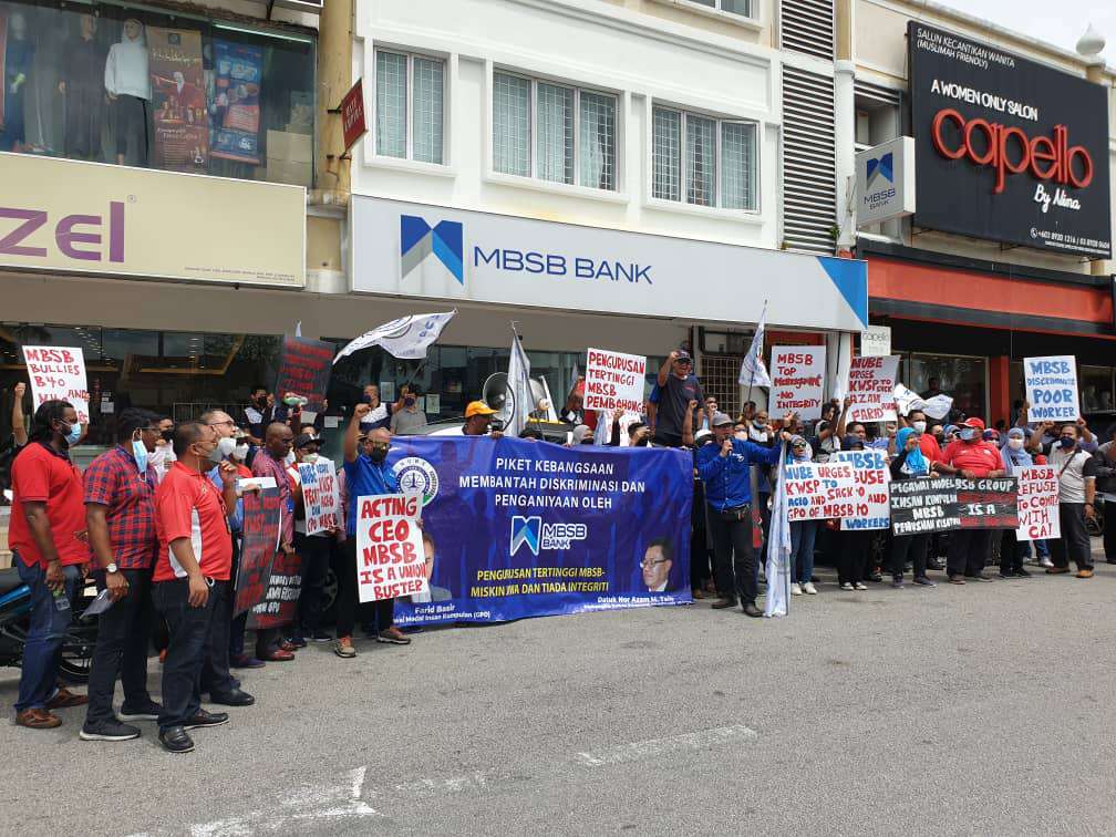 NUBE mengadakan piket peringkat kebangsaan di seluruh negara pada hari ini bagi membantah tindak-tanduk pengurusan tertinggi MBSB yang mendiskriminasi, menafikan hak ahli-ahli NUBE dan menganiayai mereka, selain bertindak dengan tidak jujur dalam urusan dengan NUBE.
