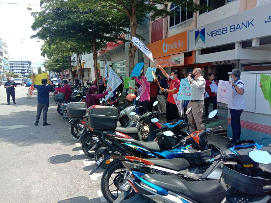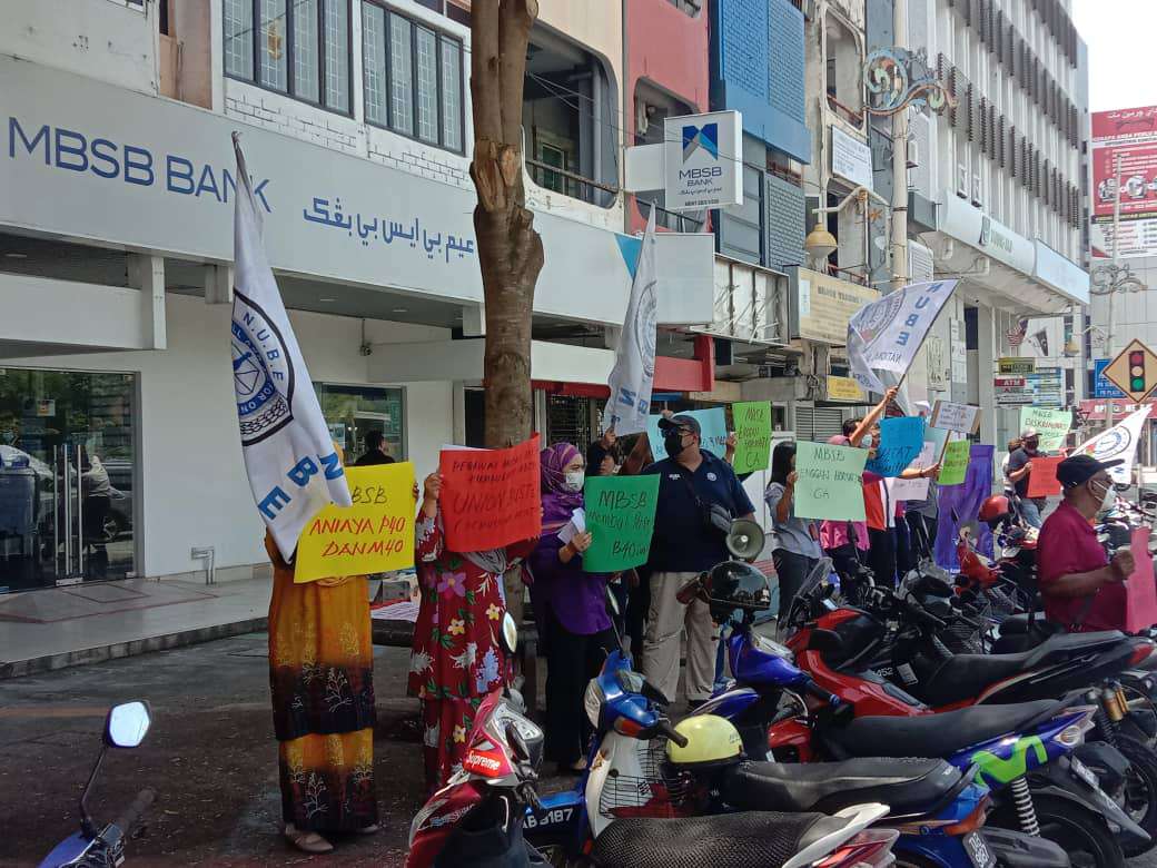 Dengan membawa pelbagai sepanduk mengecam tindak-tanduk pengurusan MBSB, ahli-ahli mahu bank itu menyelesaikan segala isu yang difailkan dan tampil mengadakan perbincangan bagi mewujudkan perhubungan perusahaan yang harmoni.