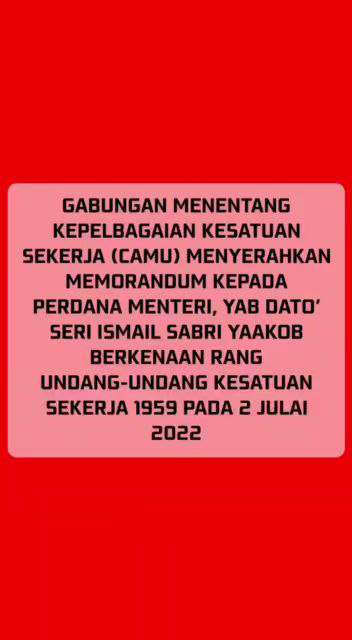 Sehubungan dengan itu, CAMU telah menyerahkan memorandum berkaitan kepada YAB Perdana Menteri pada 2 Julai 2022 lalu.