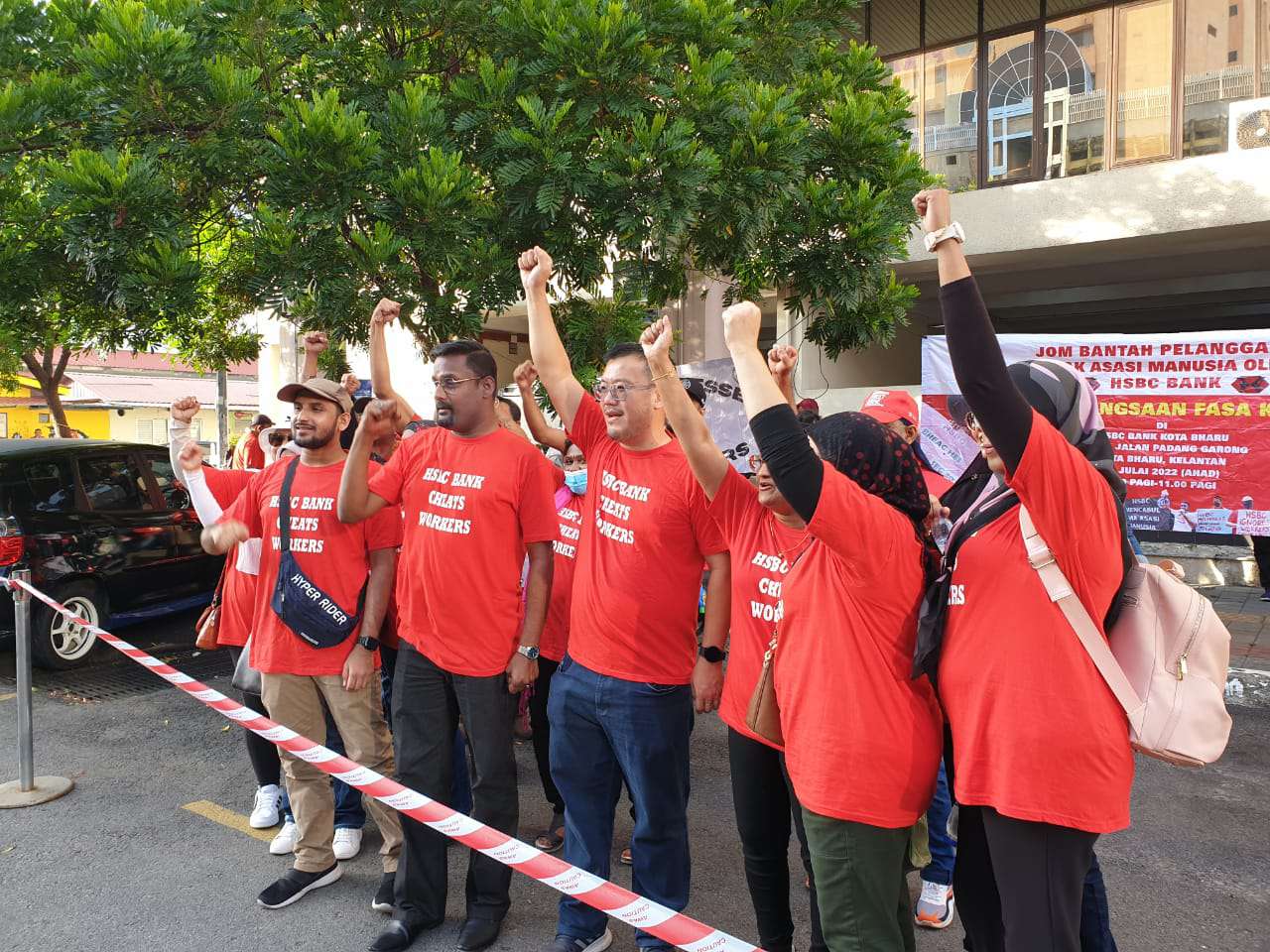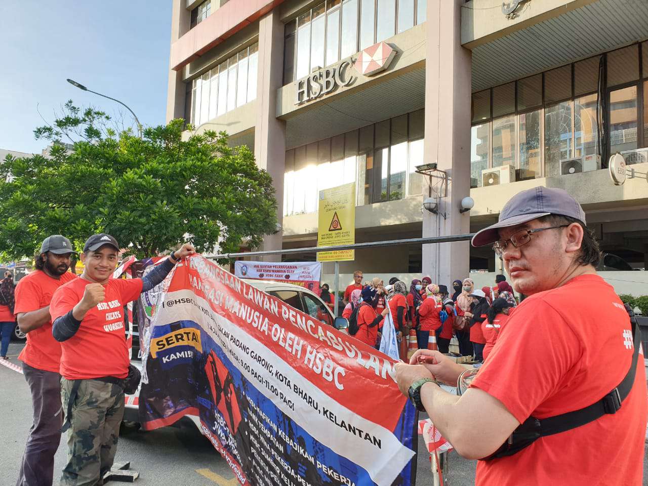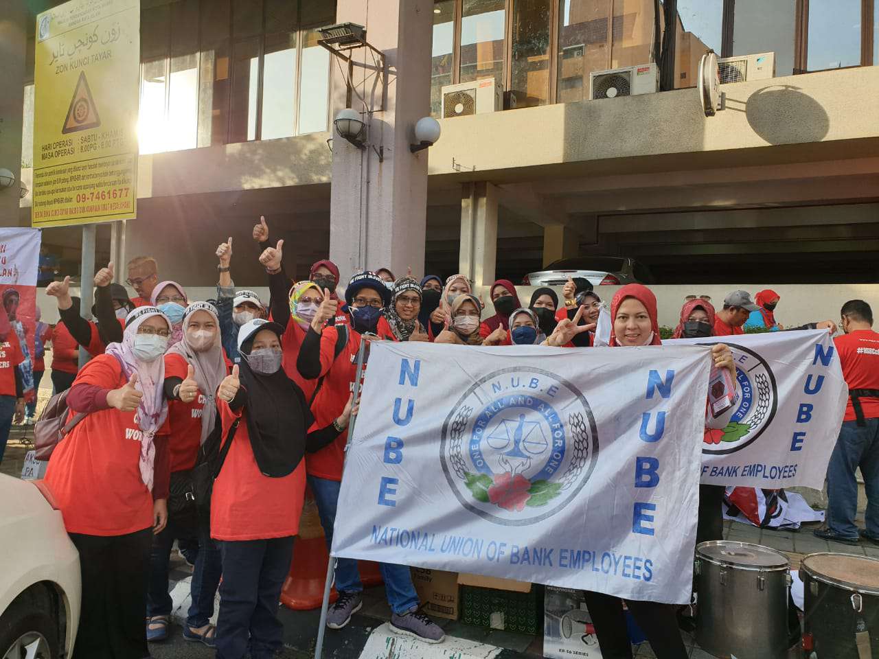 Lebih 400 ahli dan pemimpin NUBE dari seluruh Semenanjung mengambil bahagian dalam piket fasa keempat yang berlangsung di hadapan HSBC Bank Cawangan Kelantan di Kota Bharu.
