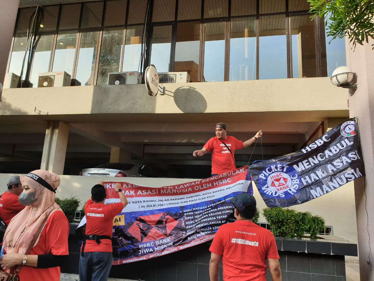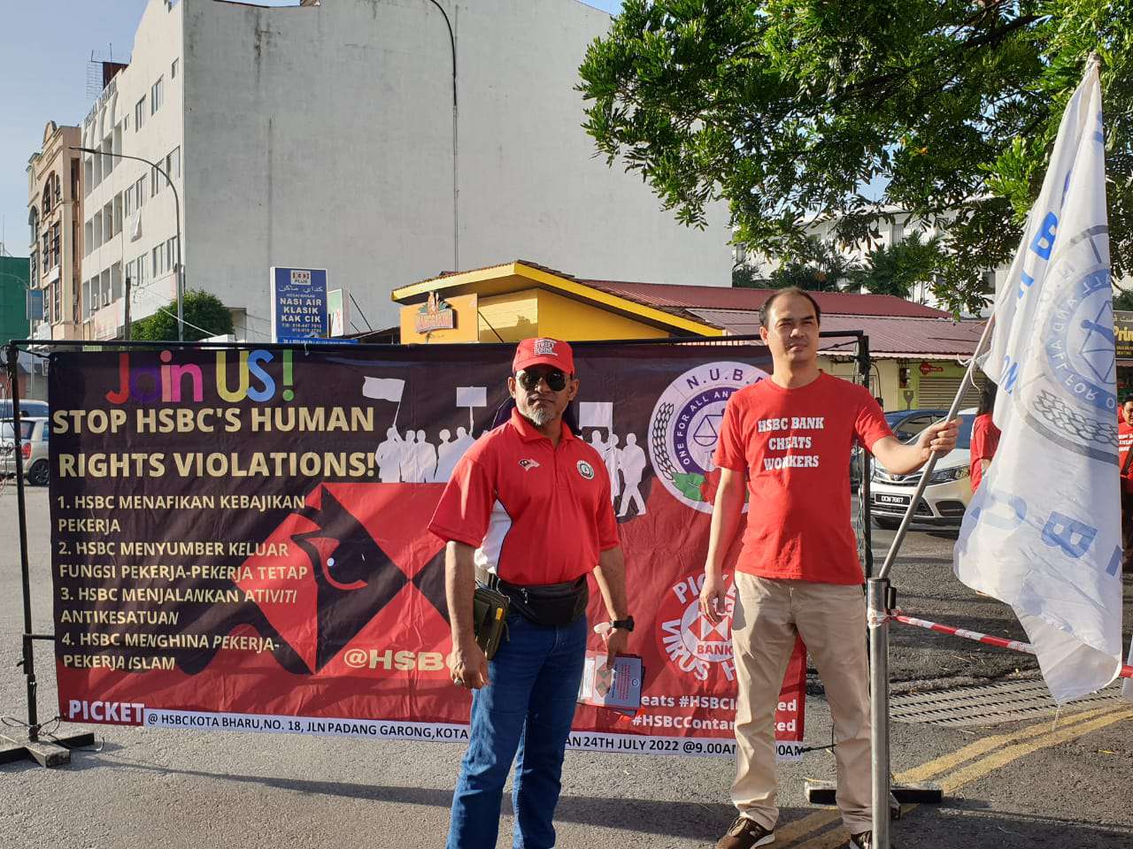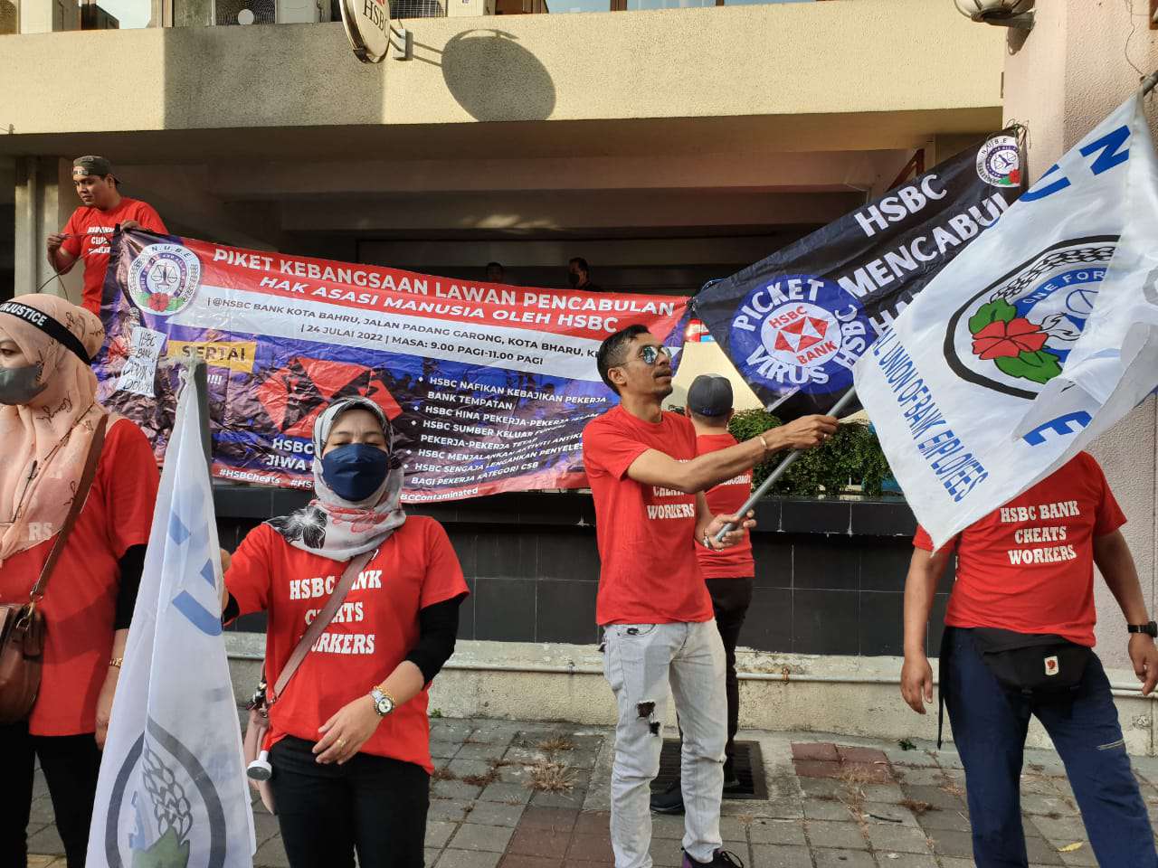 Kesatuan Kebangsaan Pekerja-pekerja Bank (NUBE) meneruskan piket kebangsaan dengan mengadakan piket fasa keempat, yang berlangsung di pekarangan HSBC Bank Malaysia di Kota Bharu, Kelantan pada hari ini (24 Julai) ekoran sikap hipokrit HSBC Bank Malaysia meneruskan dasar mendiskriminasi dan menganiaya ahli-ahli NUBE kalangan B40 dan M40.