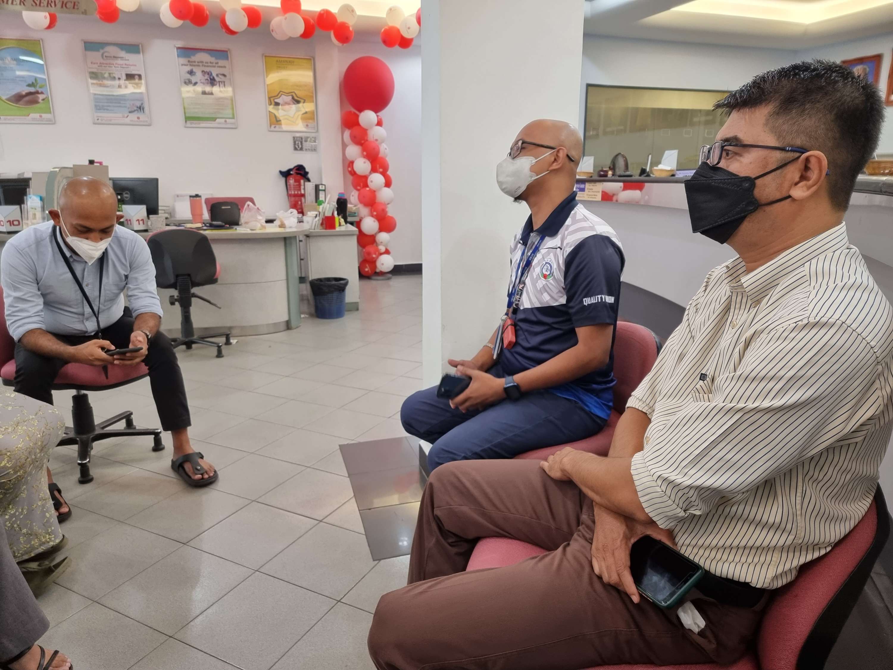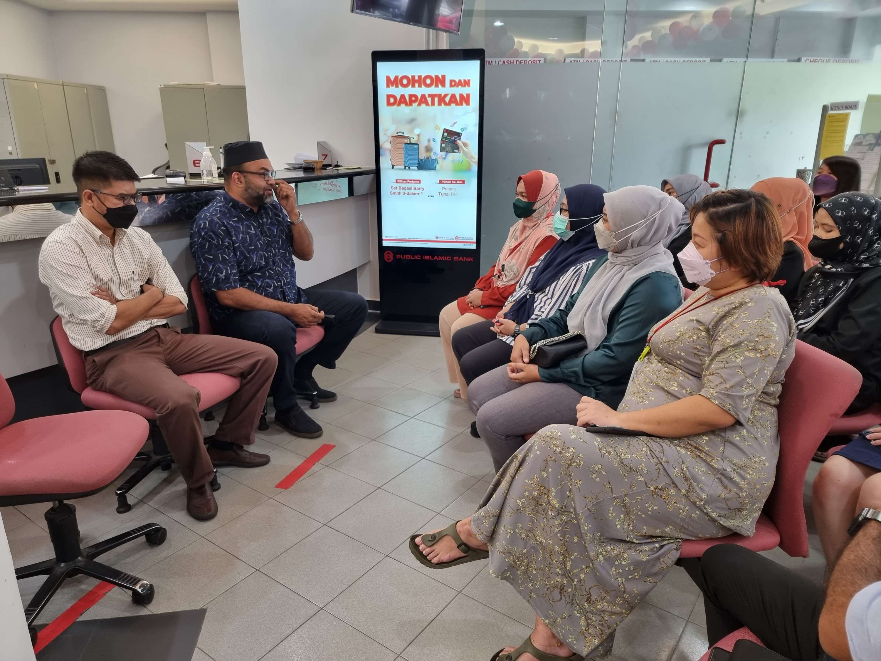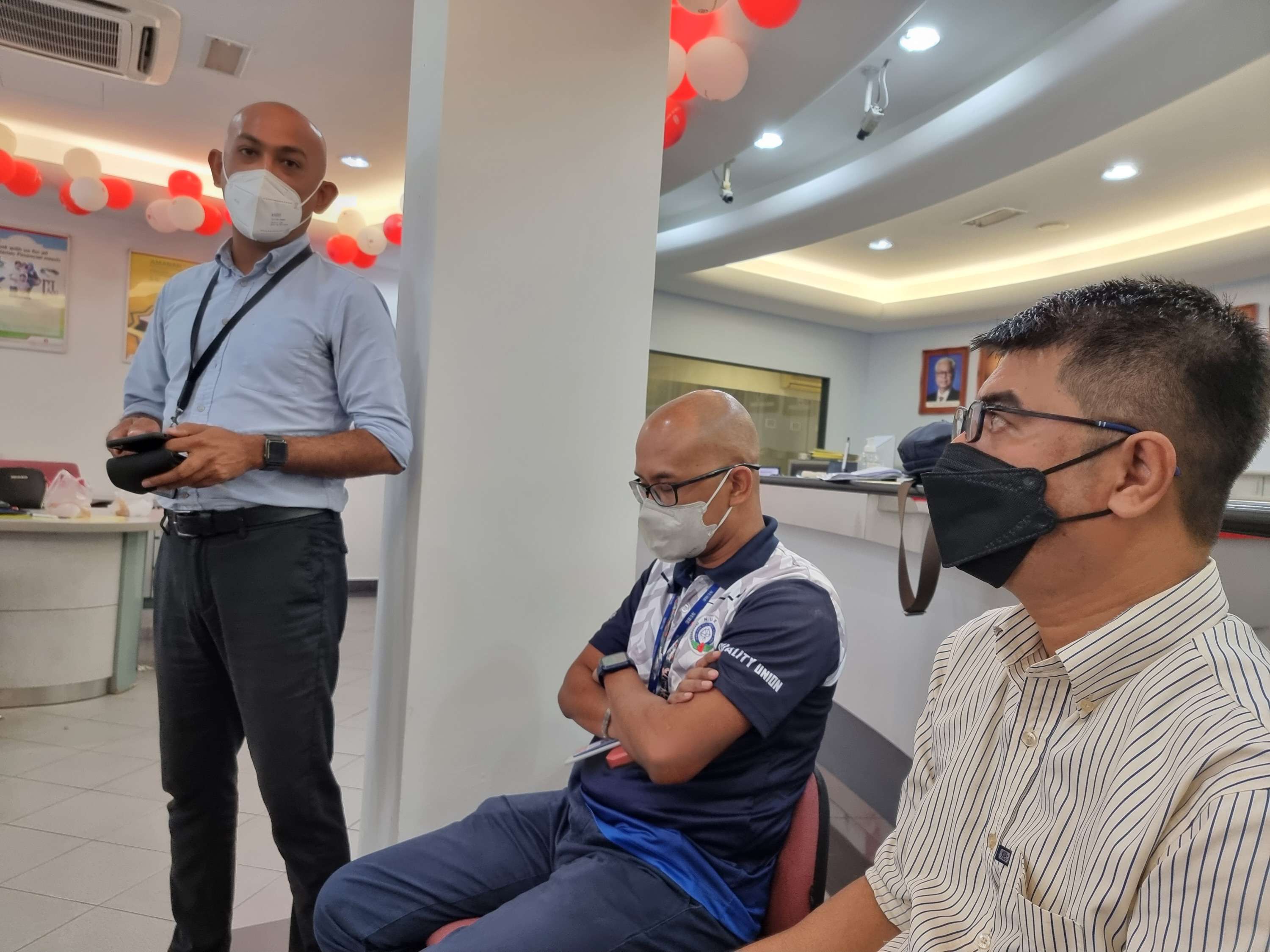 Delegasi NUBE Penang/Kedah/Perlis turut berkesempatan dengan bertanyakan khabar pada Pengurus Cawangan Public Islamic Bank, Encik Megat.