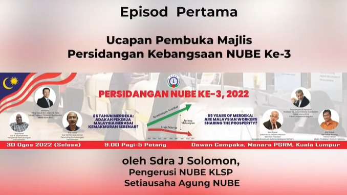 Ucapan Pembukaan Persidangan Kebangsaan yang ke 3 diadakan pada 30hb Ogos 2022 oleh Pengerusi NUBE KLSP merangkap Setiausaha Agung NUBE, Sdr J Solomon