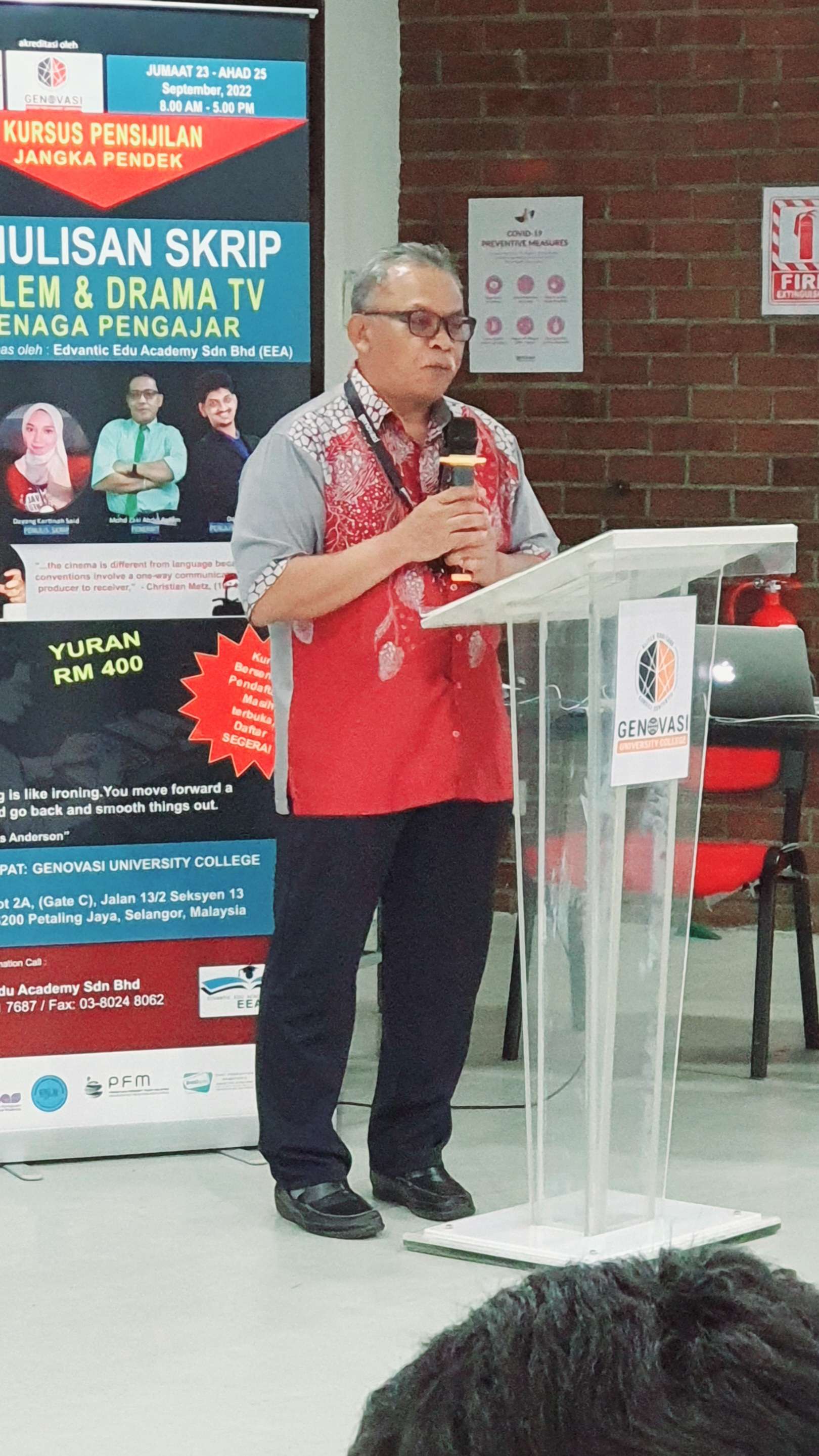 Kursus selama tiga hari ini telah dimulakan dengan nyanyian lagu Negaraku dan tayangan video pendek EEA yang dipertontonkan kepada tetamu-tetamu khas Dato'Mahyidin Mustakim (CEO CCAM) , Profesor Dr.Puniamurthy (Deputy Vice Chancellar GUC) , Profesor Dr.James Nga (President GUC) , Profesor Dr. Mohd Taipor Bin Shuhadah , Profesor Dr.Thomas Leong , Dato Seri Dr. Navin Nathan (Edvantic Board Director) , Bro J Solomon (General Secretary Of NUBE) , Dato Seri.Andrian , Mr.Dannv Lim (Registrar GUC) & Mr Siva dari Edvantic Edu Academy di ikuti kata-kata aluan oleh Encik MP Nathan yang merupakan Pengarah, Edvantic Edu Academy Sdn Bhd kepada tetamu khas dan para peserta. Sejurus kemudian, YBhg. Profesor Dr. Thomas Leong yang merupakan Naib Presiden, Genovasi University College (GUC) juga telah memberi sepatah dua kata dan sekaligus merasmikan kursus ini.