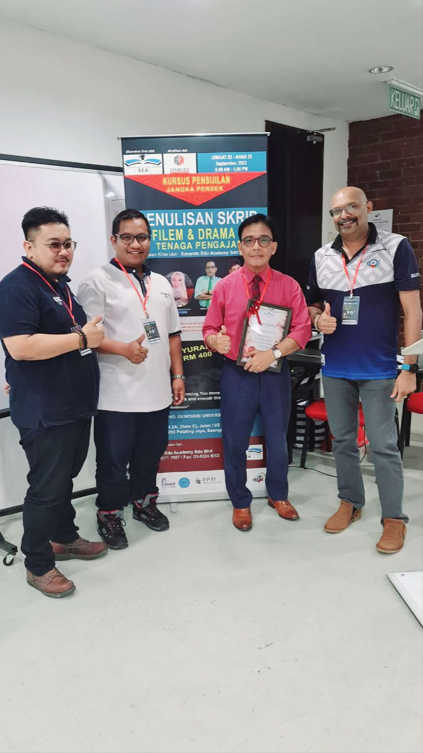 Seramai 8 delegasi daripada kesemua cawangan NUBE telah mengikuti kursus Pensijilan Jangka Pendek Penulisan Skrip yang telah berlangsung di Genovasi University College pada 23 September 2022 hingga 25 September 2022 dibawakan khas oleh Edvantic Edu Academy Sdn Bhd dan akreditasi oleh Genovasi University College.