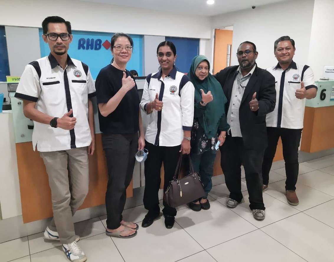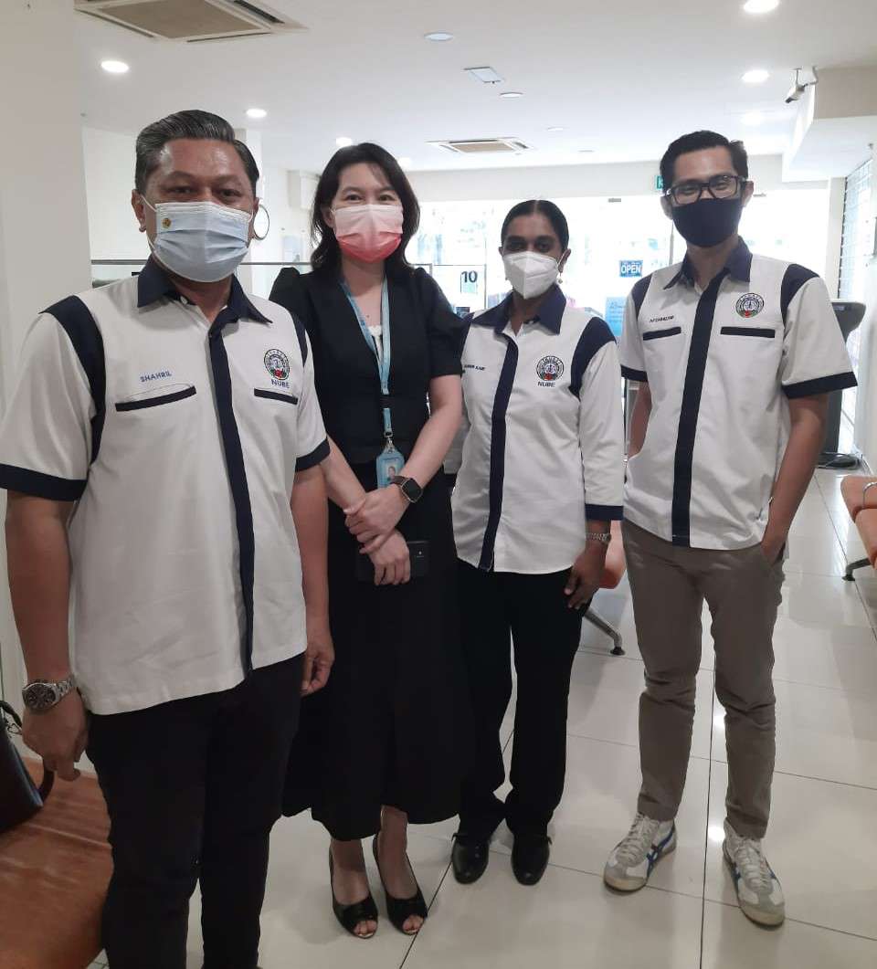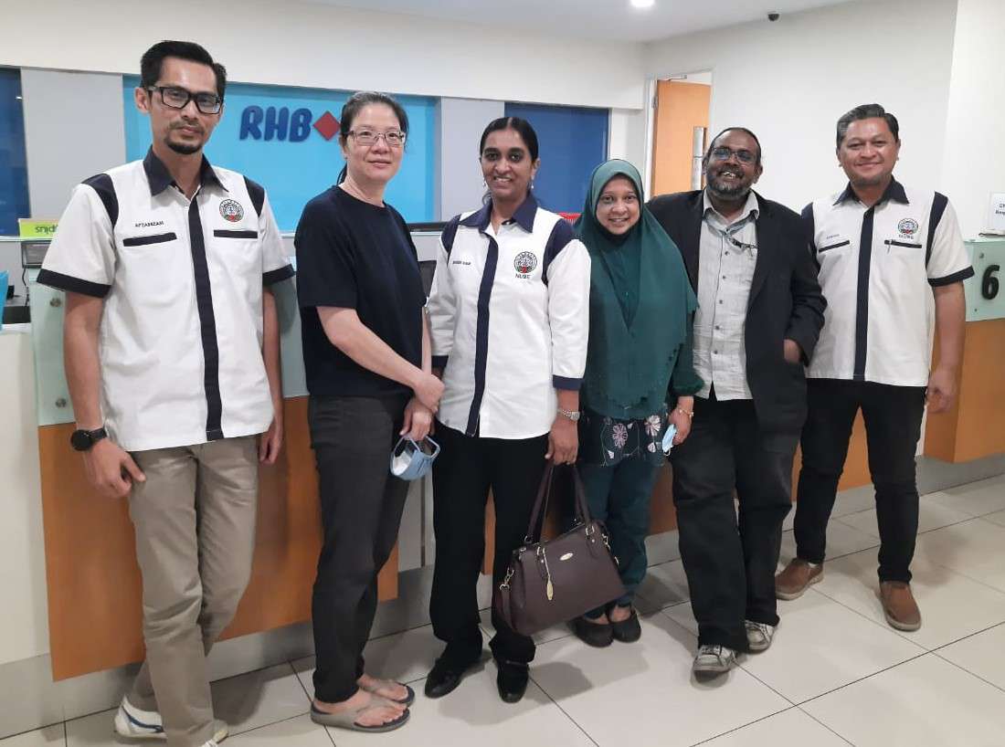 1hb November 2022, Barisan Pemimpin NUBE Cawangan Ipoh dianggotai Sdr. Shahril, Sdr. Nizam dan Sdri. Sharen Kaur telah mengunjungi RHB Bank cawangan Ipoh Garden, Perak.