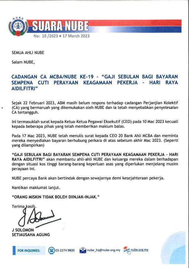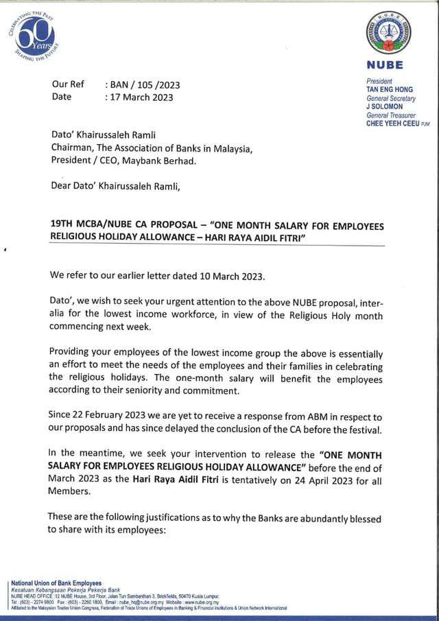 CADANGAN CA MCBA/NUBE KE-19 - "GAJI SEBULAN BAGI' BAYARAN SEMPENA CUTI PERAYAAN KEAGAMAAN PEKERJA HARI RAYA AIDILFITRI"