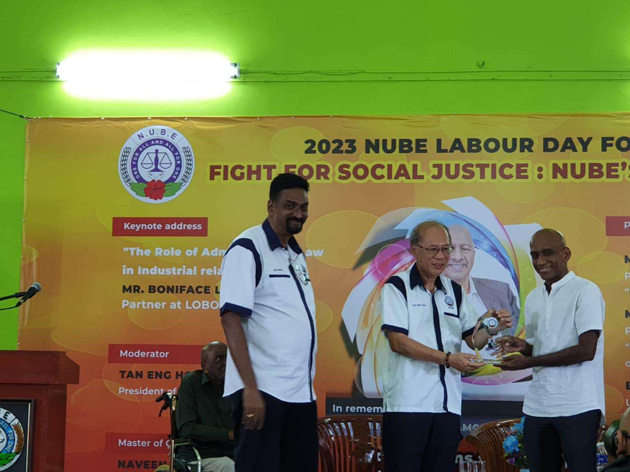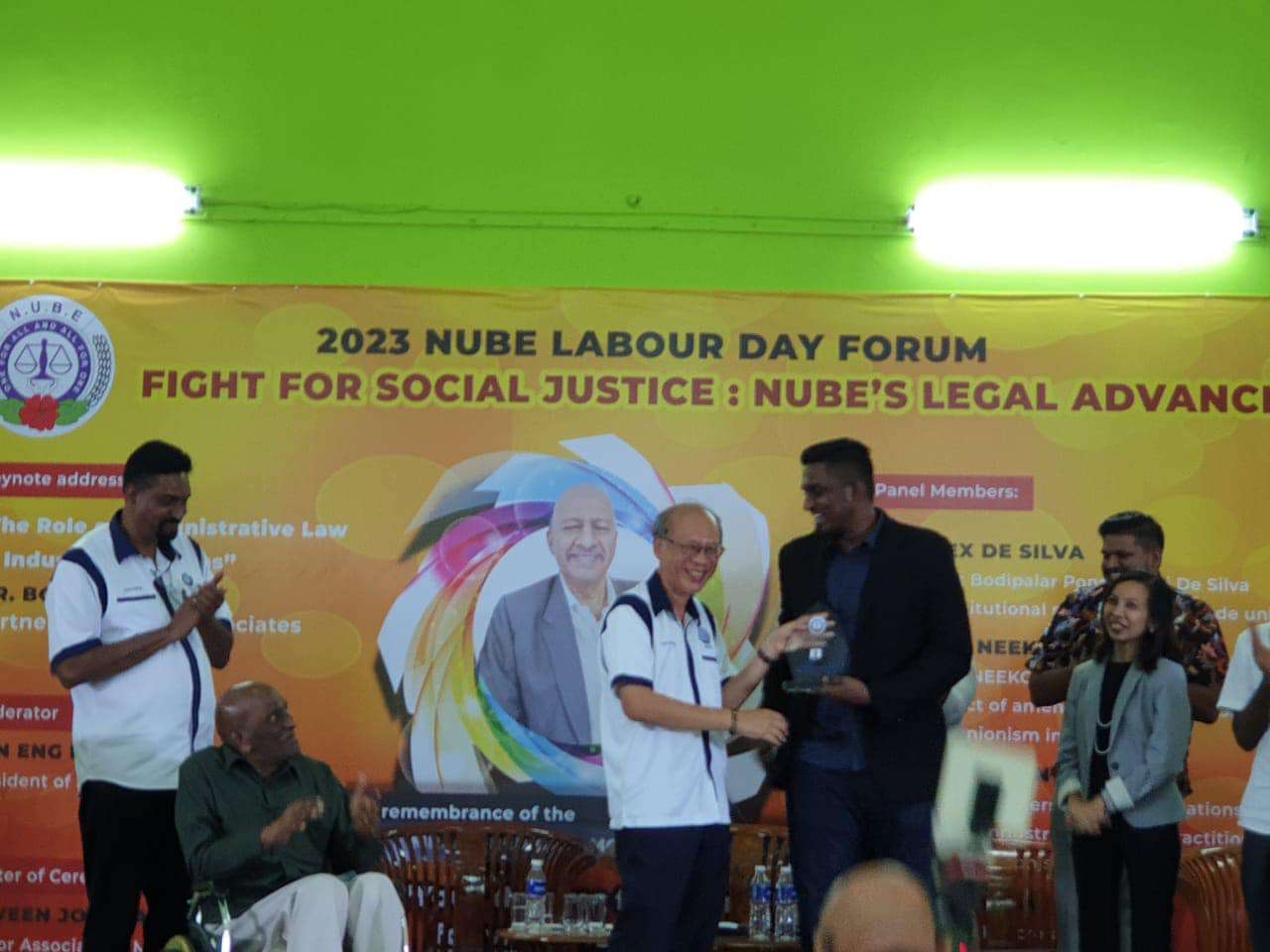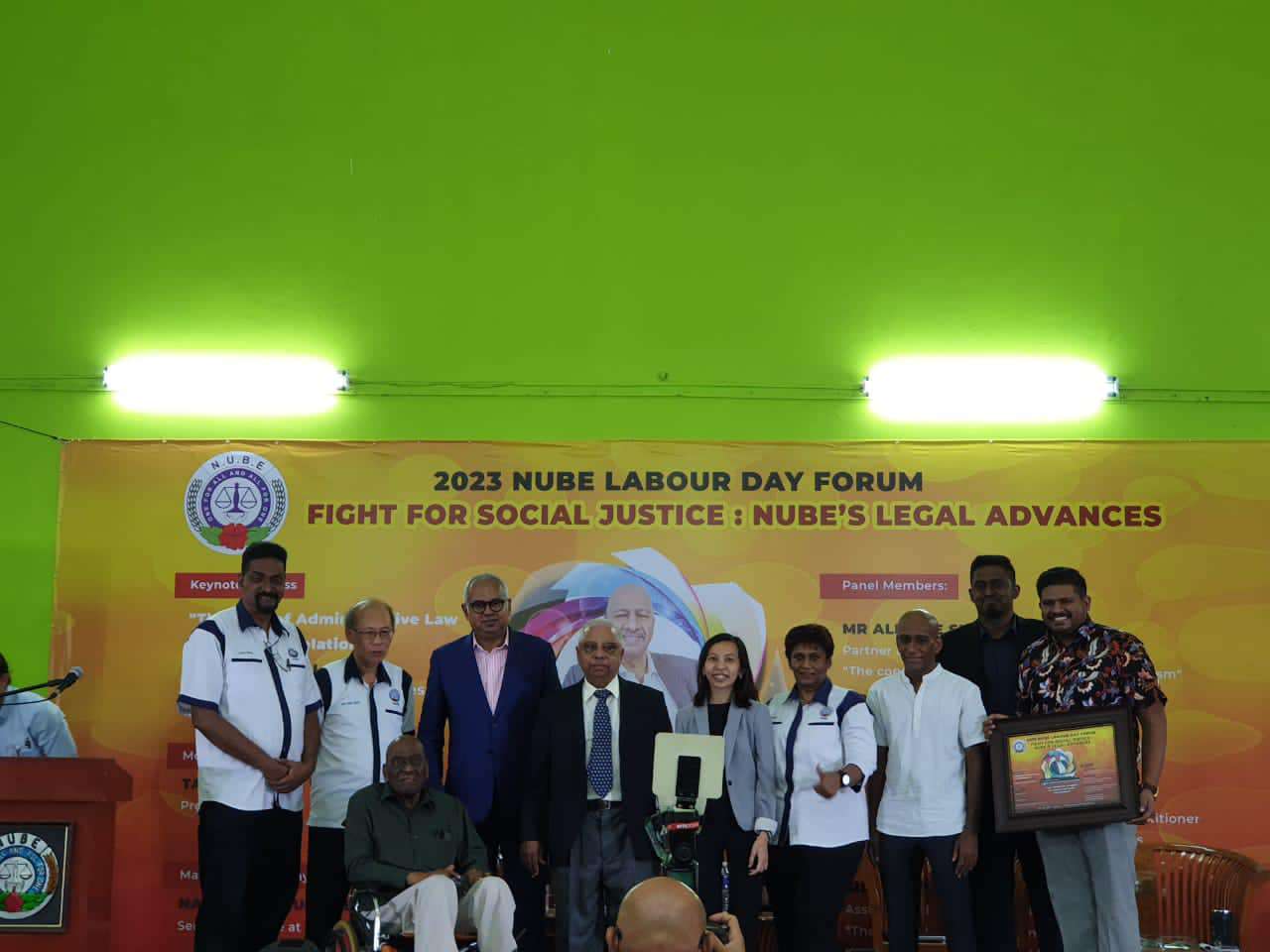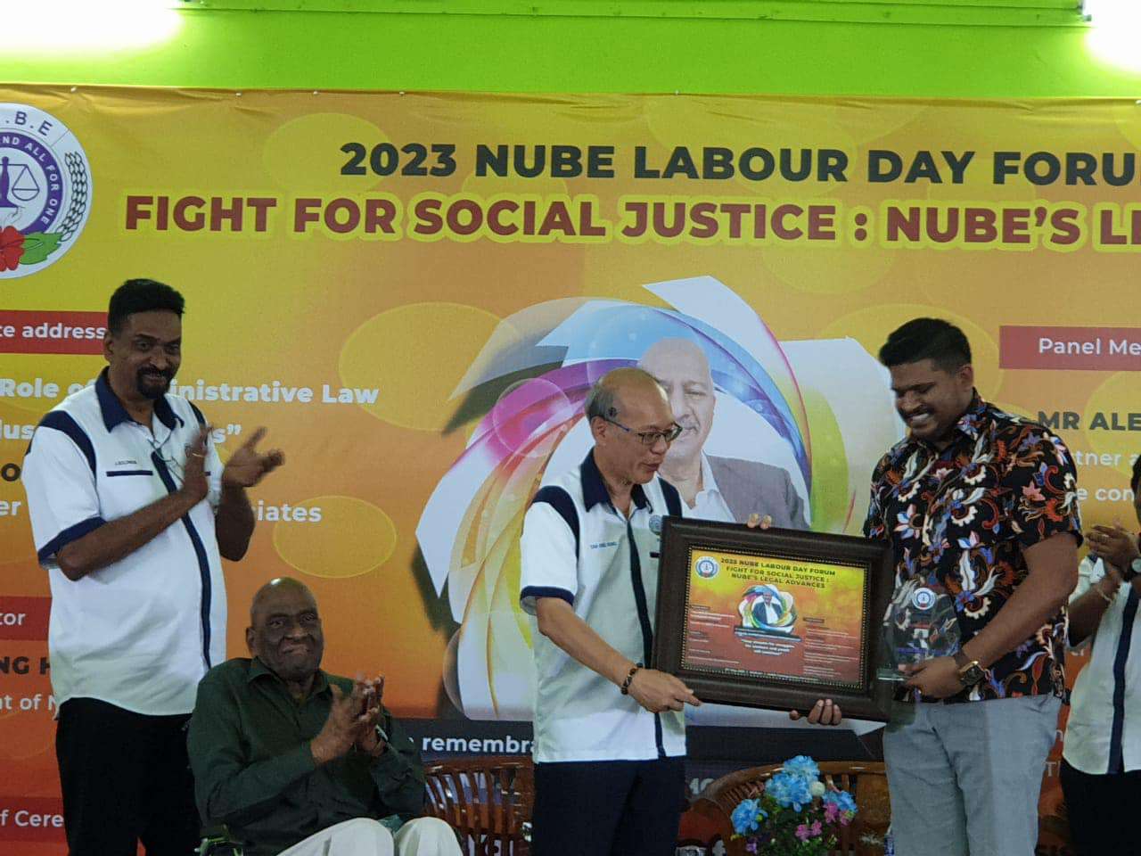 Sdr Michael Tan, Presiden NUBE yang bertindak sebagai moderator telah menyampaikan plak tanda penghargaan kepada penceramah ucaptama dan ahli-ahli panel. Dua orang peguam yang turut mewakili NUBE dan menang dalam kes-kes yang dibawa turut dihargai.