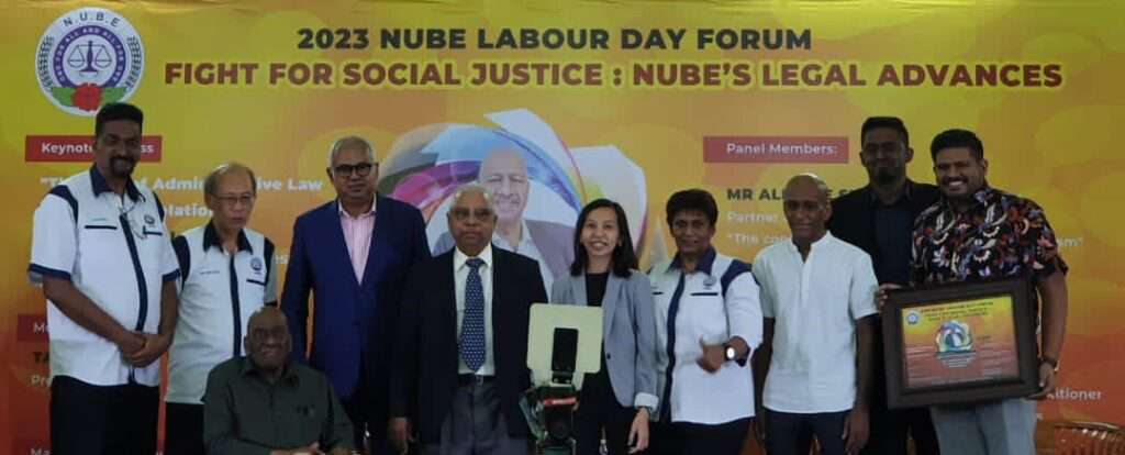 Forum itu, yang dianjurkan oleh Kesatuan Kebangsaan Pekerja-pekerja Bank (NUBE), menampilkan Boniface Lobo dari LOBO & Associates yang menyampaikan ucaptama bertemakan “The Role of Administrative Law in Industrial Relations”.