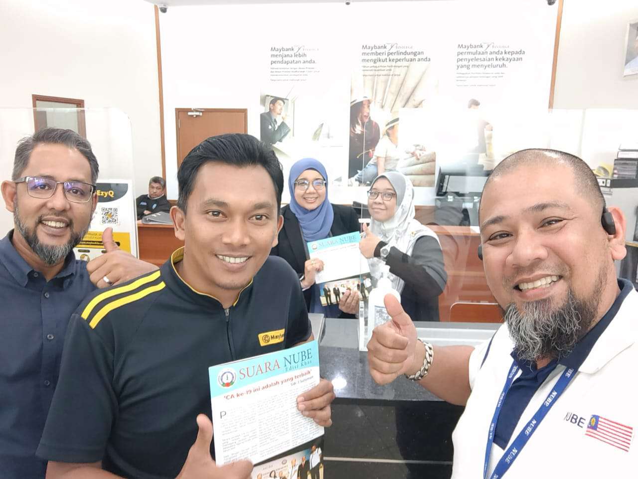 Ahli- ahli NUBE NR PKP dari HLBB Autocity, Maybank Juru, Affin Bank Juru dan Standard Charted Autocity yang menerima 'SUARA NUBE' Edisi Khas turut mendoakan kejayaaan dan kemajuan NUBE Malaysia terus terpelihara dalam usaha menyediakan perlindungan sosial yang wajar khususnya untuk ahli - ahli NUBE MALAYSIA.