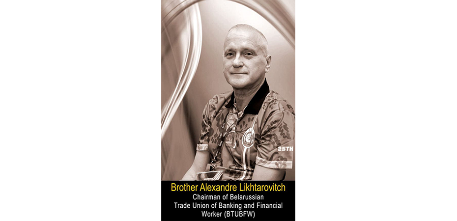 Saudara Alexandre bukan sahaja seorang rakan seperjuangan yang berdedikasi malahan juga seorang kawan yang dihargai. Legasi beliau dalam Kesatuan Sekerja Perbankan dan Pekerja Kewangan Belarusia, WFTU dan komuniti Kesatuan Sekerja Antarabangsa adalah sangat mendalam.